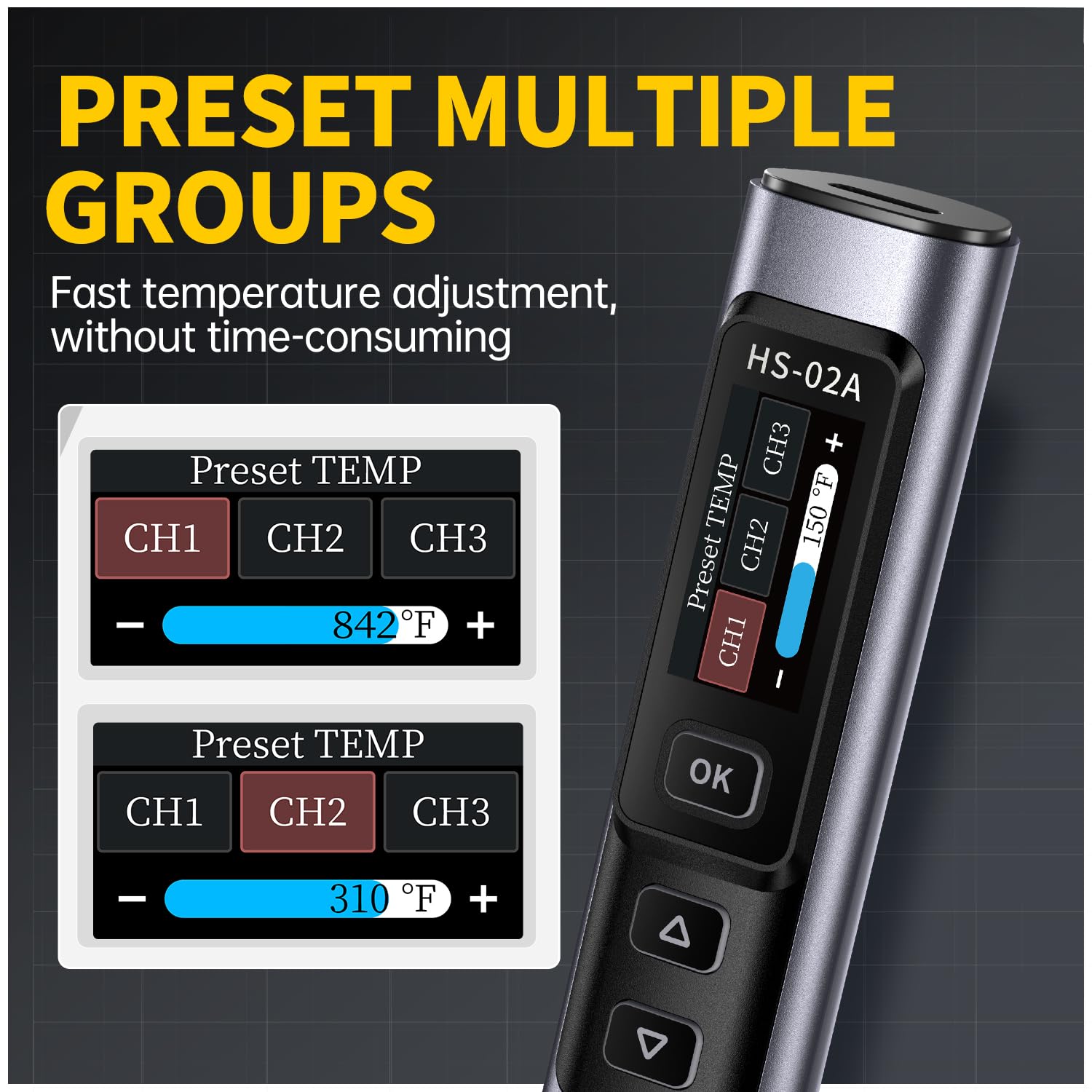 - 【3 Groups Pre-set Temp】Preset multiple groups of fixed temperature, fast temperature adjustment without time-consuming