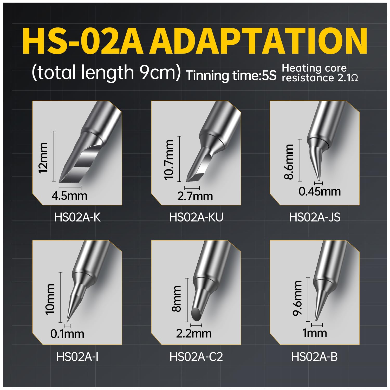 - 【High Quality Accessories】 HS02B is equipped with 3 soldering iron tips (K、KU、JS、I、C2、B). The integrated design allows the soldering iron to heat up quickly and maintain a stable temperature.The 100W charging adapter allows you to use it immediately.