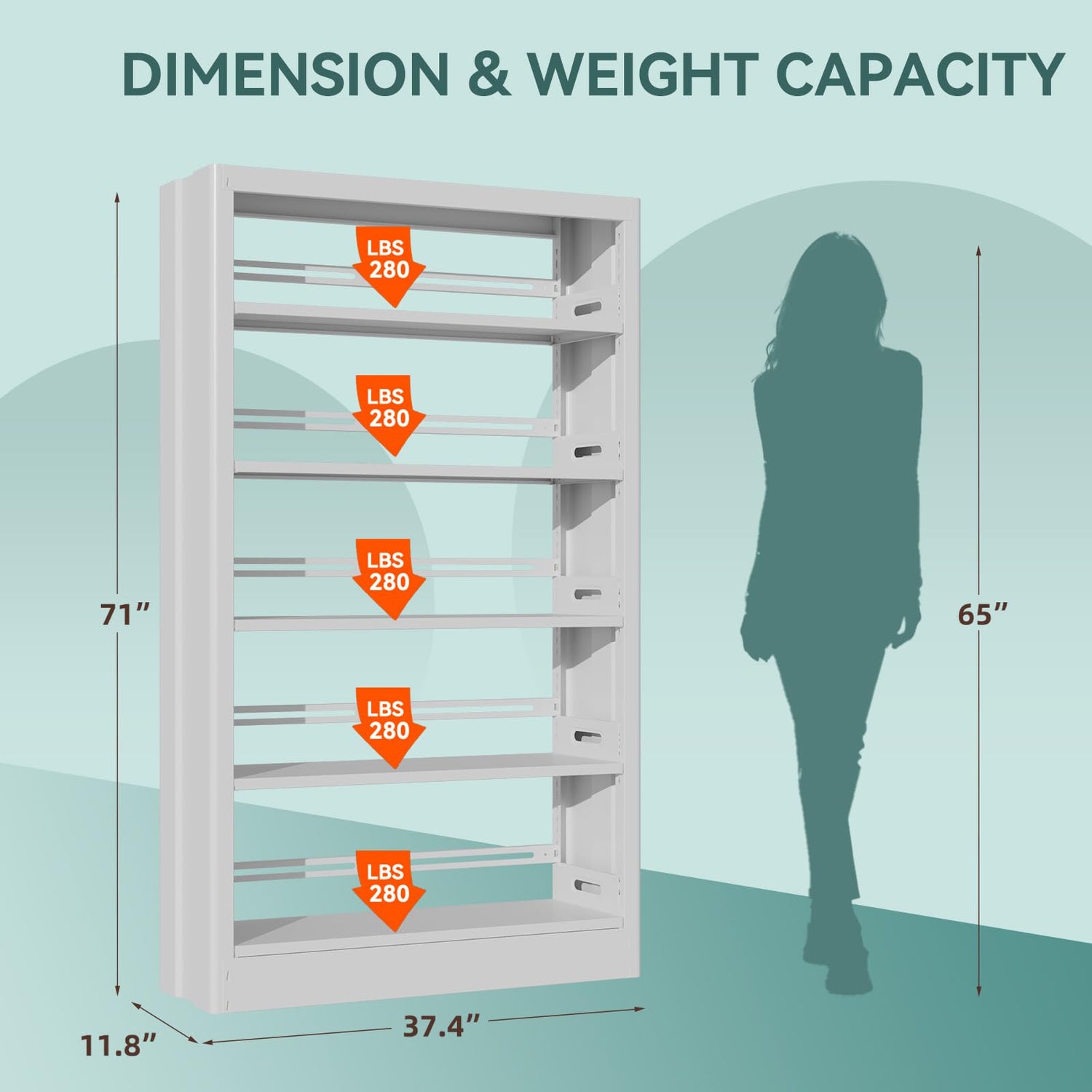 - Stability & Long-Lasting: The white book shelf as a whole is made entirely of metal, making it stronger and more stable than wooden book shelves, with a maximum weight capacity of 280lbs per shelf. The metal surface is powder coated, so you can use it with confidence.