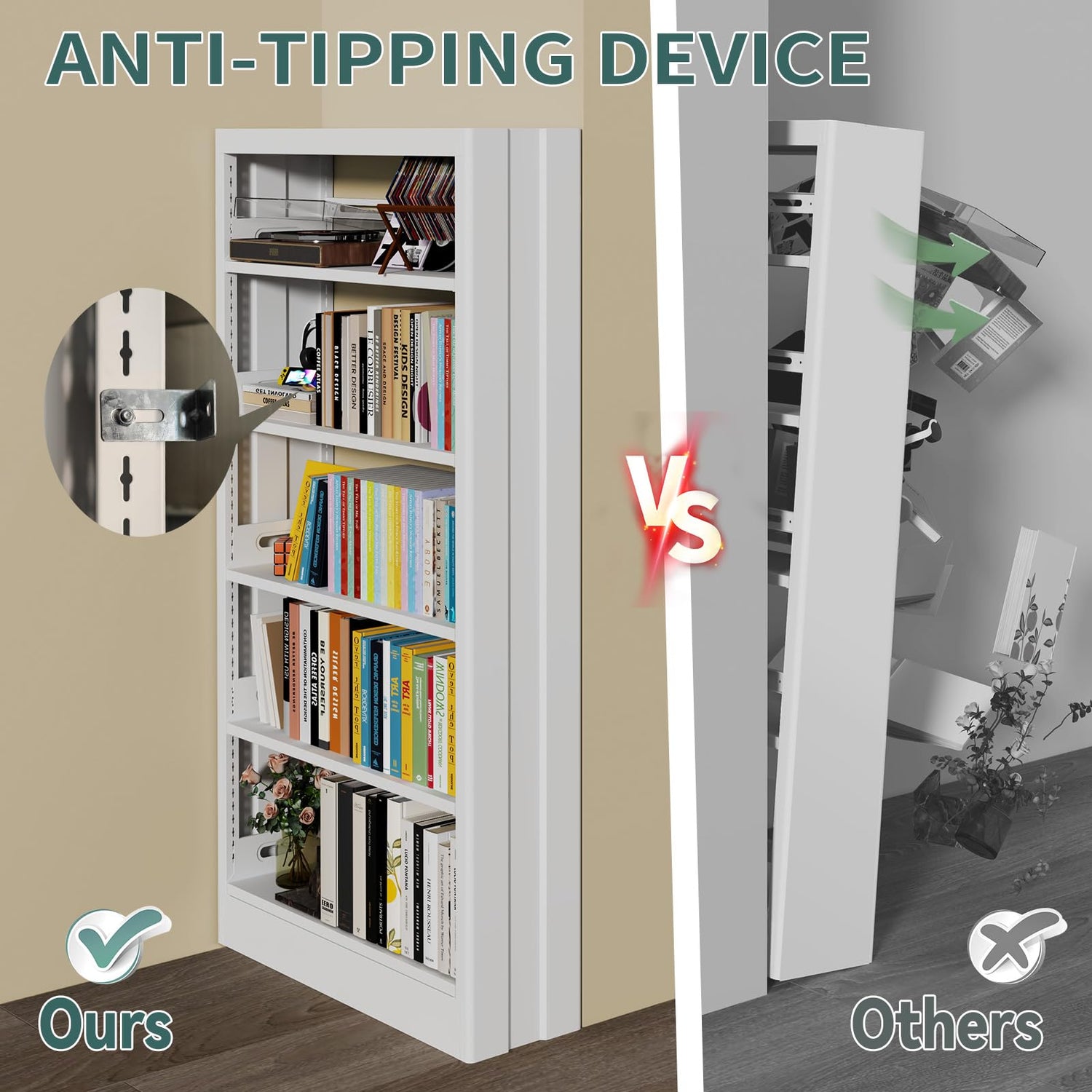 - Multi-Safety Design: The rounded edges of the large bookcase are designed to prevent accidental collisions and the non-slip mat prevents scratching the floor. The book stopper can prevent books from falling, and you can freely choose to install it on the back or front of the bookshelf for better protection. Anti-tipping design can prevent the tall bookcase from collapsing accidentally.