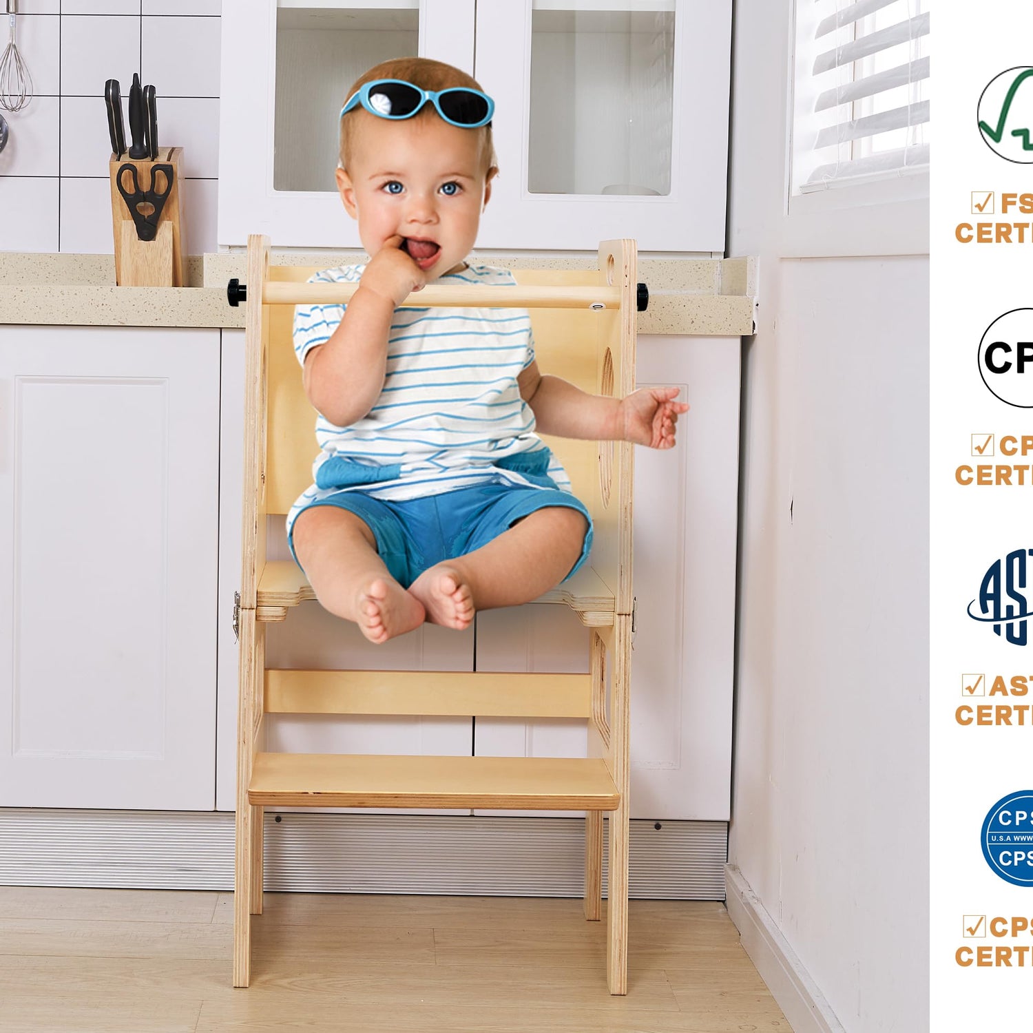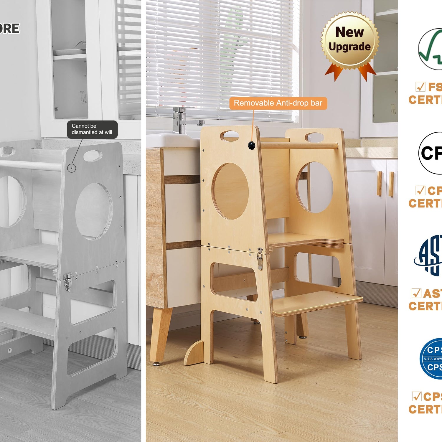 - ใSAFE&STABLEใWith Anti-Slip Protection, it will keep your baby safe inside. And this set of study tower design details are handled exceptionally well. Made of birchwood, the surface of this kids stool for kitche is polished, smooth and thornless, and does not hurt the hands