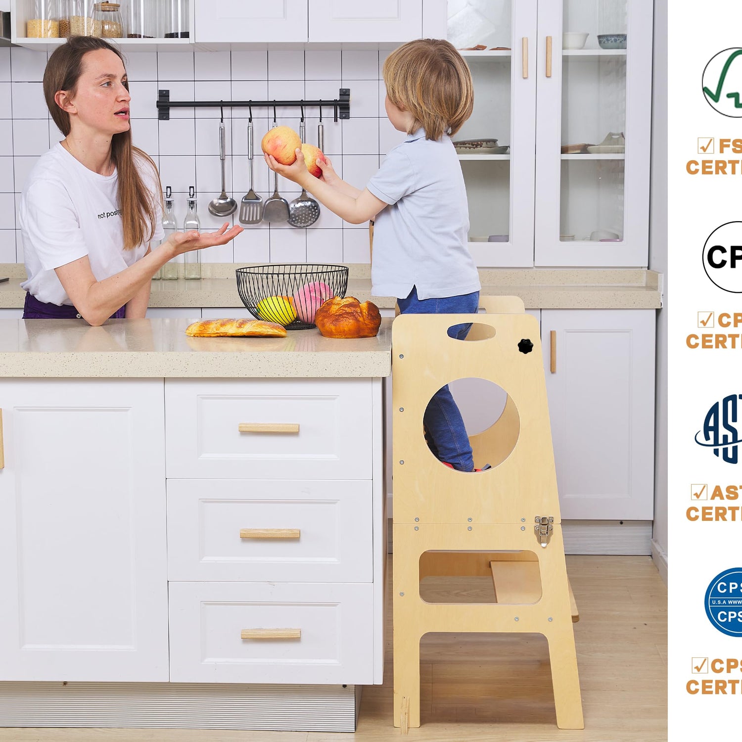 - ใKITCHEN STOOL HELPERใknown as a Study Tower or a Kitchen Tower, is a piece of Toddler Furniture designed to help young children safely participate in kitchen activities. it can provide a safe and stable platform for children to stand on so they can reach the countertop and participate in cooking or other kitchen tasks alongside adults. This can help children learn about food preparation, cooking, and kitchen safety, while also fostering independence and confidence