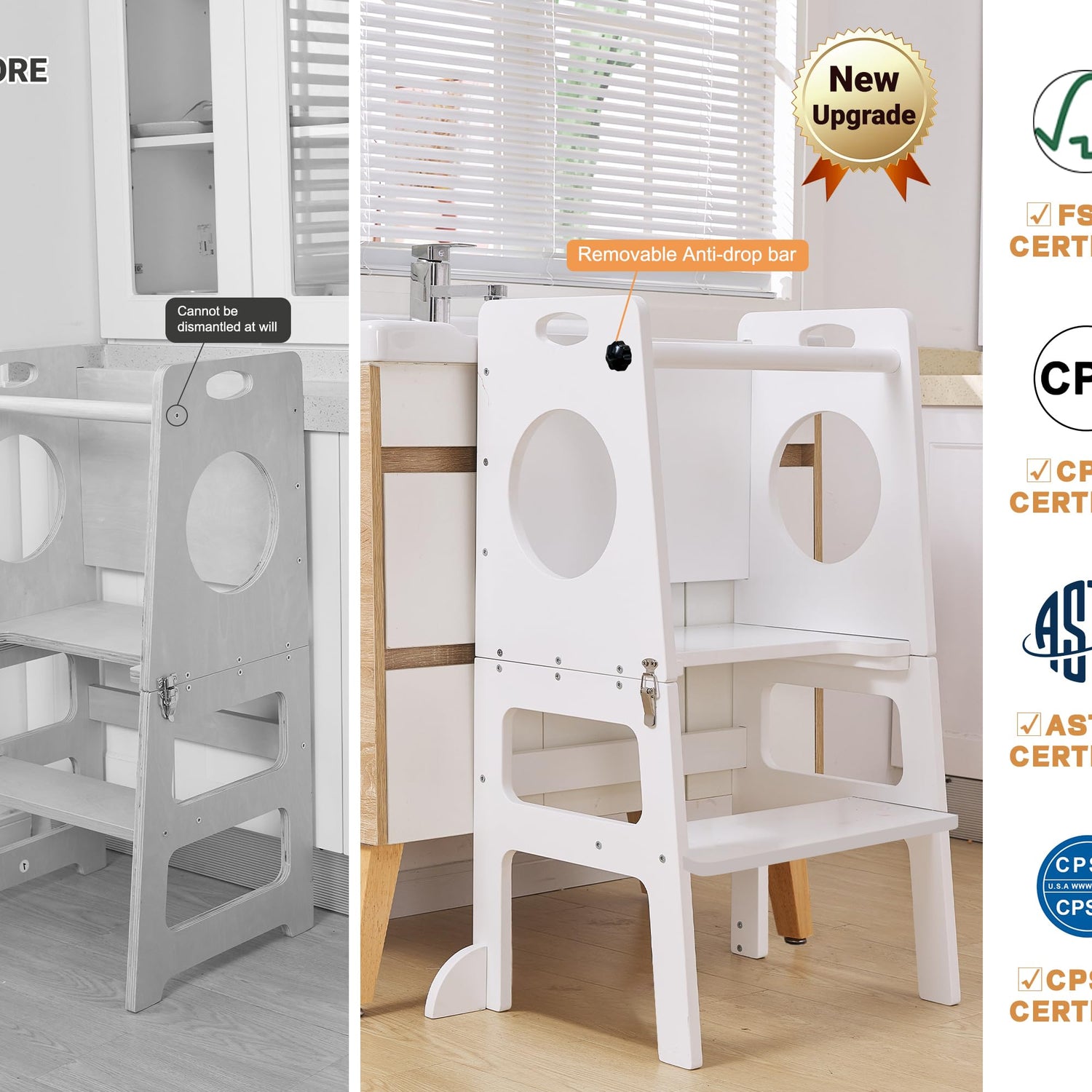 - ใPATENTED DESIGNใEasy to climb, suitable for children, is the perfect kitchen stool and the best KITCHEN STOOL HELPER, specially designed according to Montessori's teaching philosophy. This Study Tower set builds children's confidence and independence