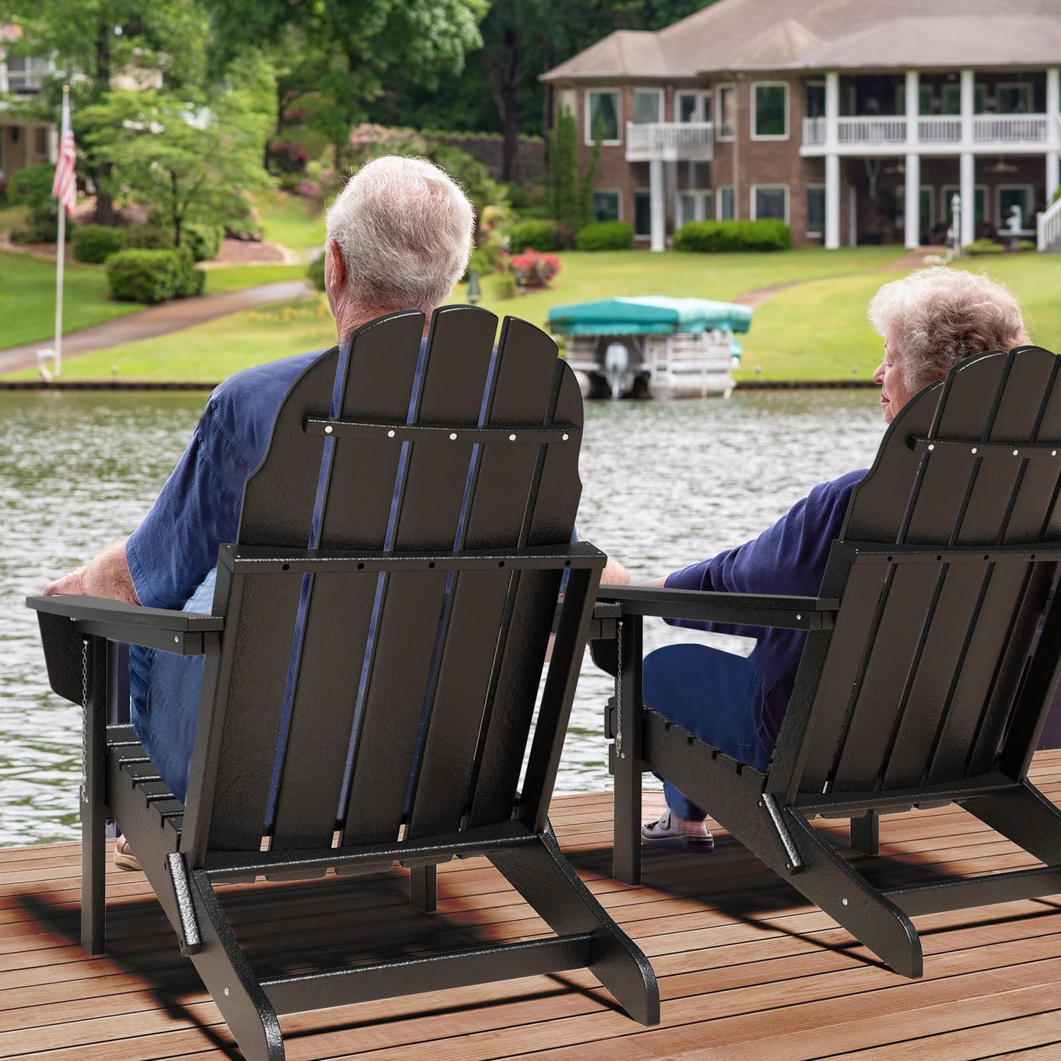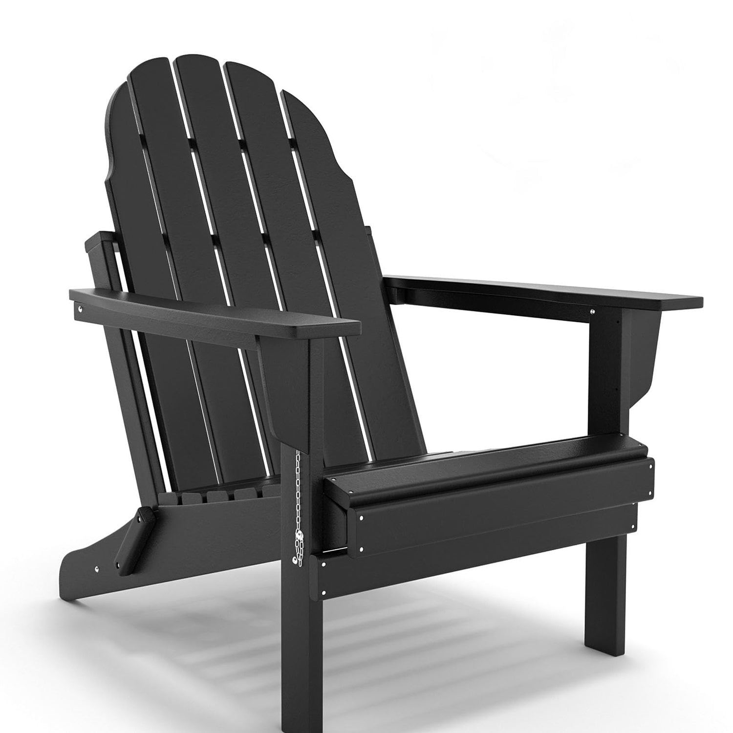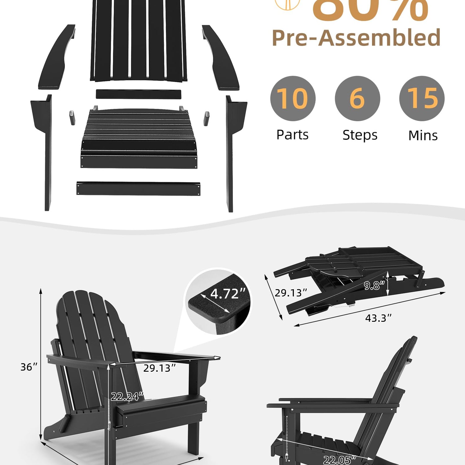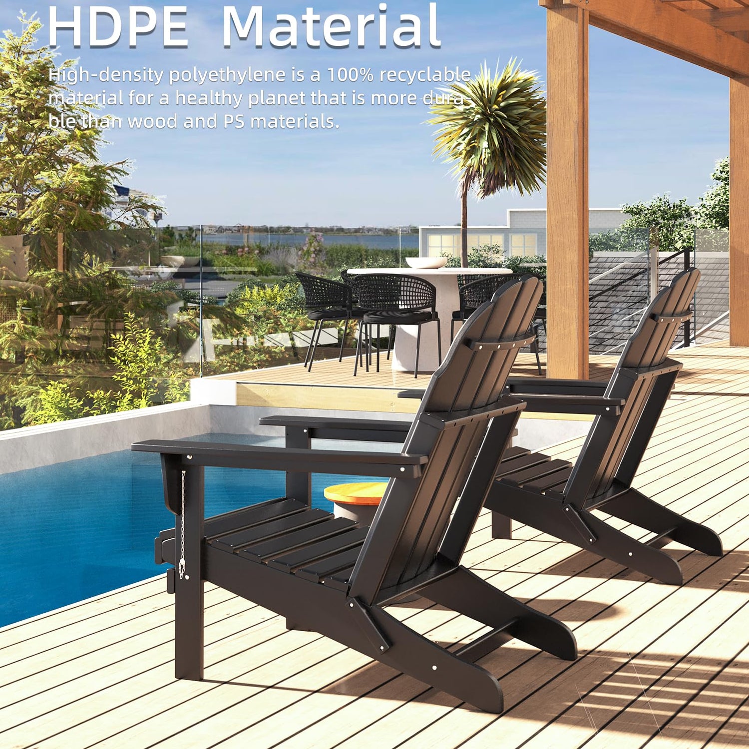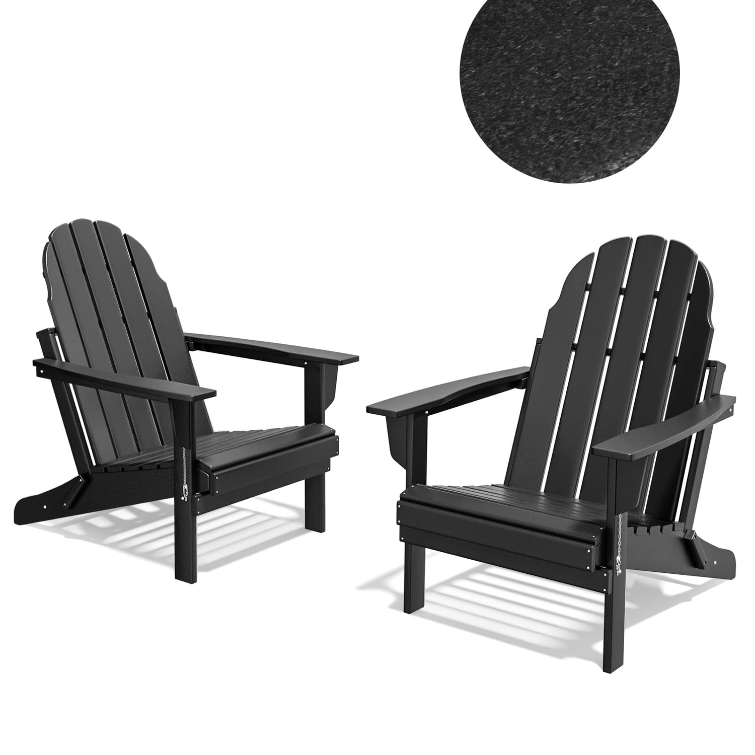 Folding Adirondack Chair - Durable HDPE Poly Lumber All-Weather Resistant, Foldable Oversized Balcony Porch Patio Outdoor Chair for Lawn, Backyard, Deck, Garden, Camping - Easy Installation, Black