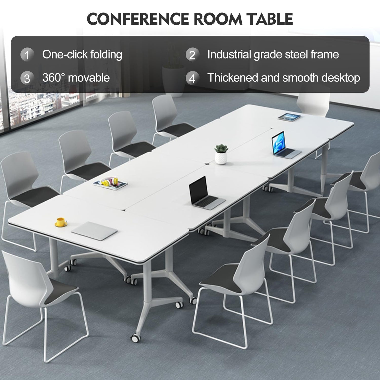 - 【Mobile Design】: The conference table is equipped with four wheels, with high load capacity and excellent stability. Each folding conference table slides easily to reconfigure your office layout with ease. Fast-swivel and lockable wheels increase work efficiency.
