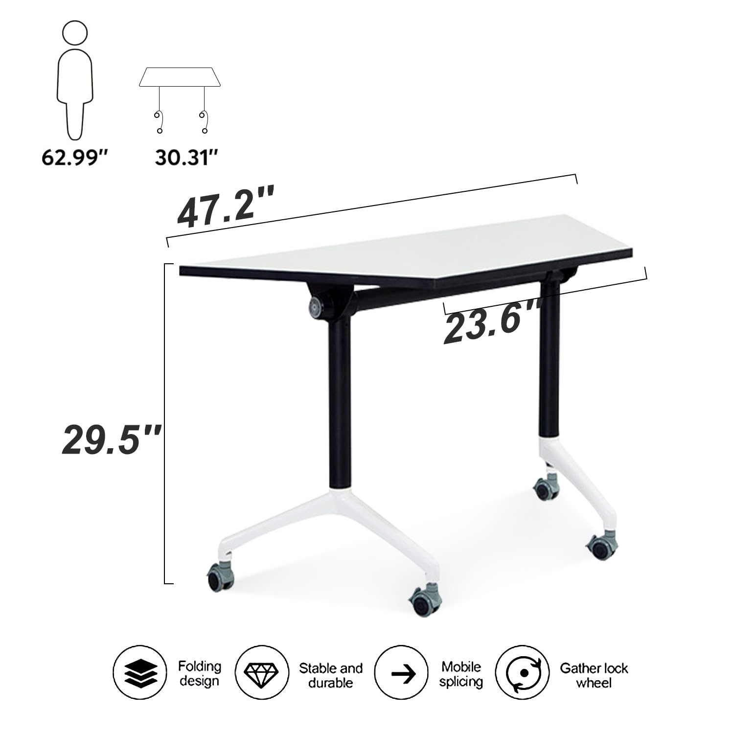 - Foldable Design :This folding flip top mobile training room table folds easily and quickly, is flexible, foldable, removable and splicable. There are enlarged folding lock buttons on both sides of the stackable conference table. After folding, conference table can be stacked to save space.The rounded edge design allows you to use our training room tables with confidence.