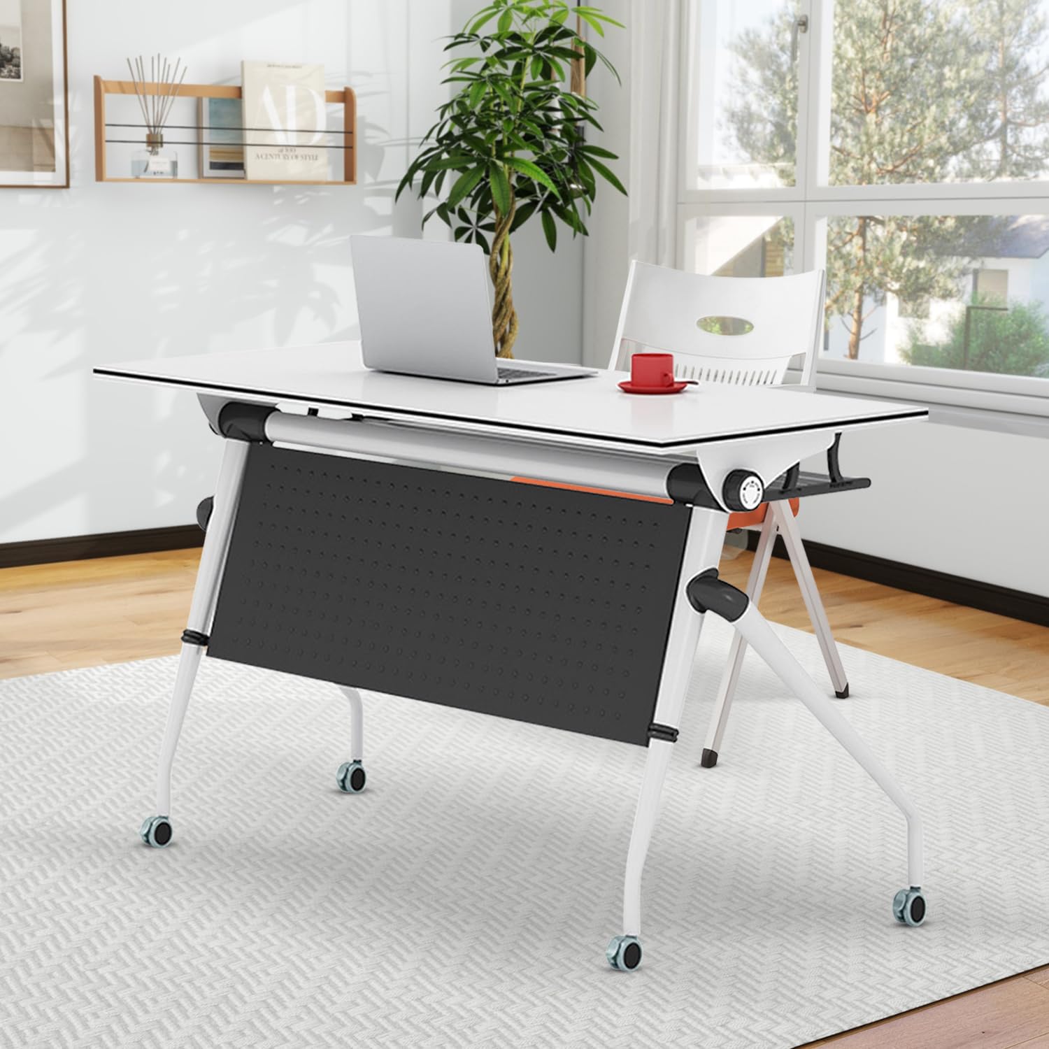 - Easy To Fold-There are twist folding switches on both sides of the conference table for one click folding,the foldable conference room table is an excellent choice for conference rooms, meeting tables are convenient for transportation and does not take up a lot of space, it can be placed in any corner of the conference room when not needed, stack together to save your space.