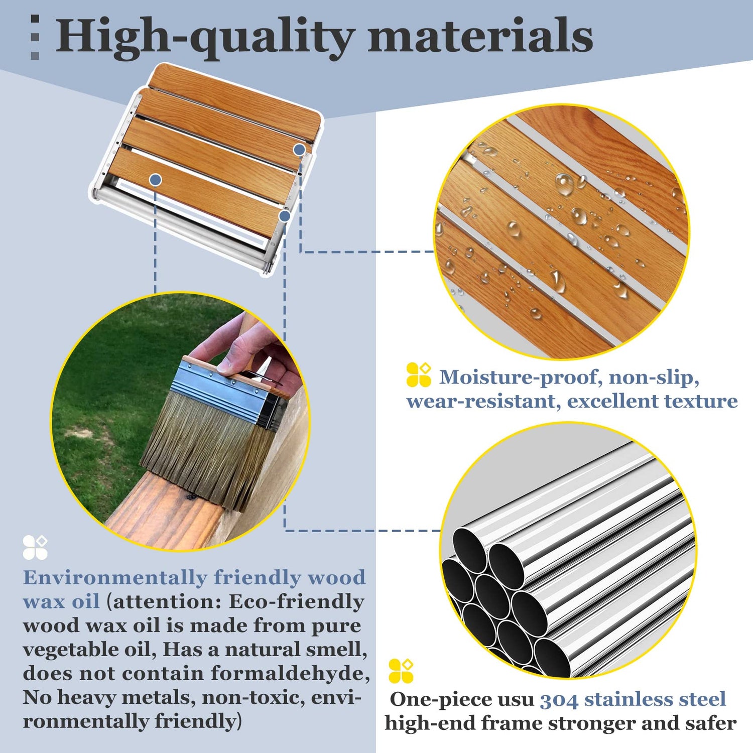 • Teak Wood material: The Folding Shower Seat Wall Mounted is composed of one-piece high-strength usu304 stainless steel and waterproof and durable teak. Holds up to 400 lbs. The circlip is designed to be folded and folded smoothly, and this structure is more secure and stable