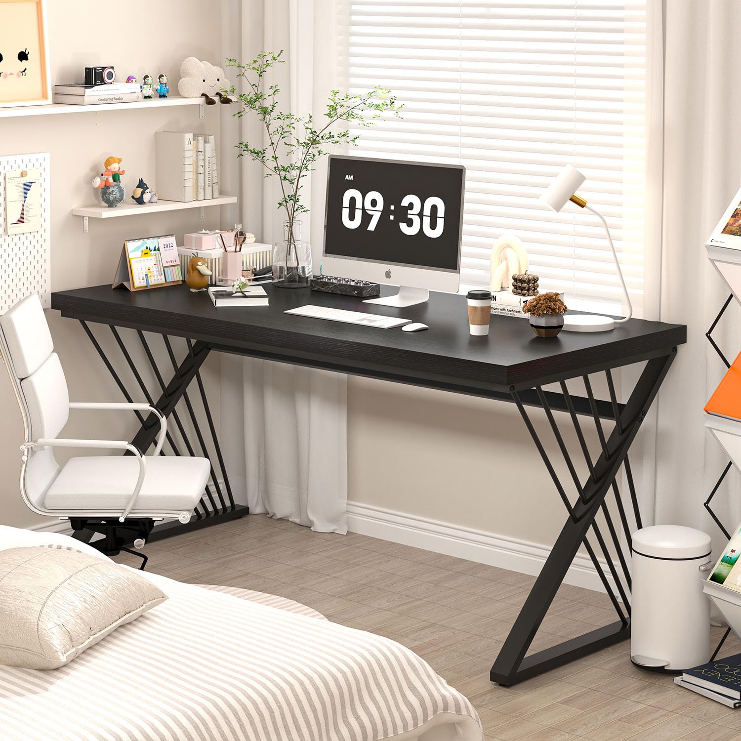 - Sturdy Work Desk with Z-Shaped Frame: Built with a 1.57" thick MDF top and durable black metal frame, this home office desk offers stability and style. The Z-frame design adds support while enhancing the modern and minimalist aesthetic of this black desk