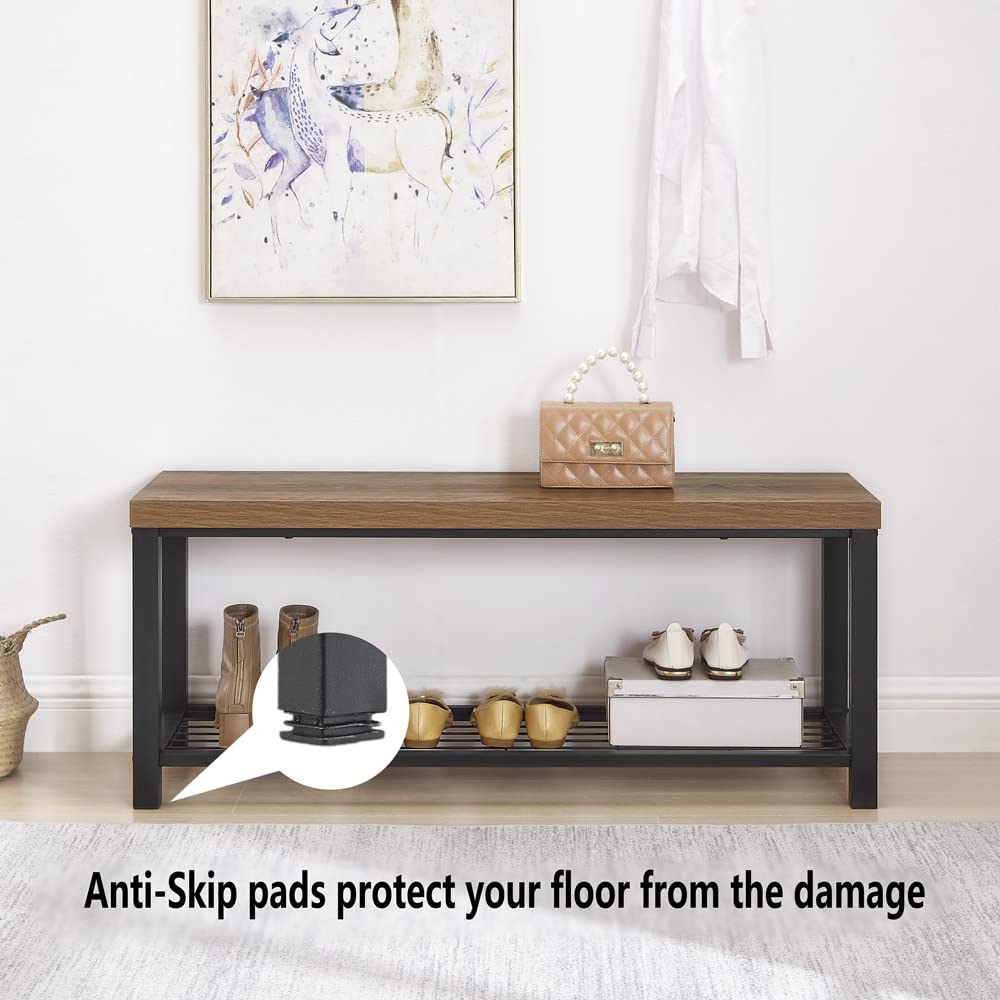 FOLUBAN Entryway Bench, Modern Shoe Storage Bench, Rustic Wood and Metal Entry Bench for Hallway Front Door Entrance, Industrial Indoor Bench for Bedroom Living Room, Oak, 43.3 Inch