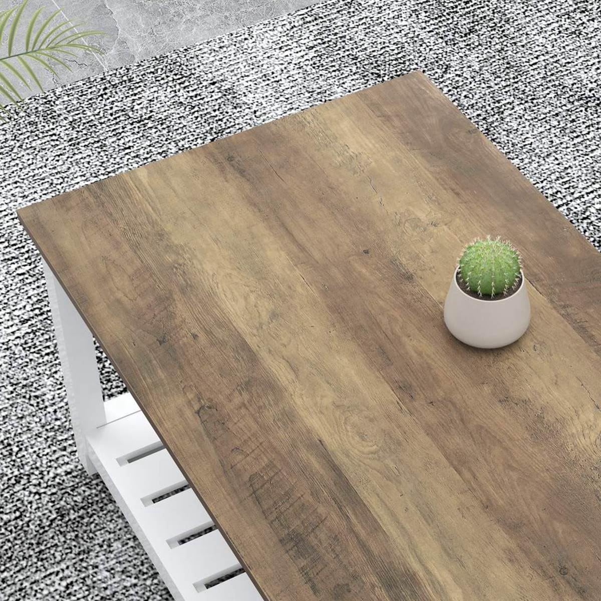 - FARMHOUSE GRACE: This coffee table exudes rustic charm with its oak wood grain surface and white frame. The perfect combination of vintage and farmhouse styles adds a touch of timeless elegance to your living room.