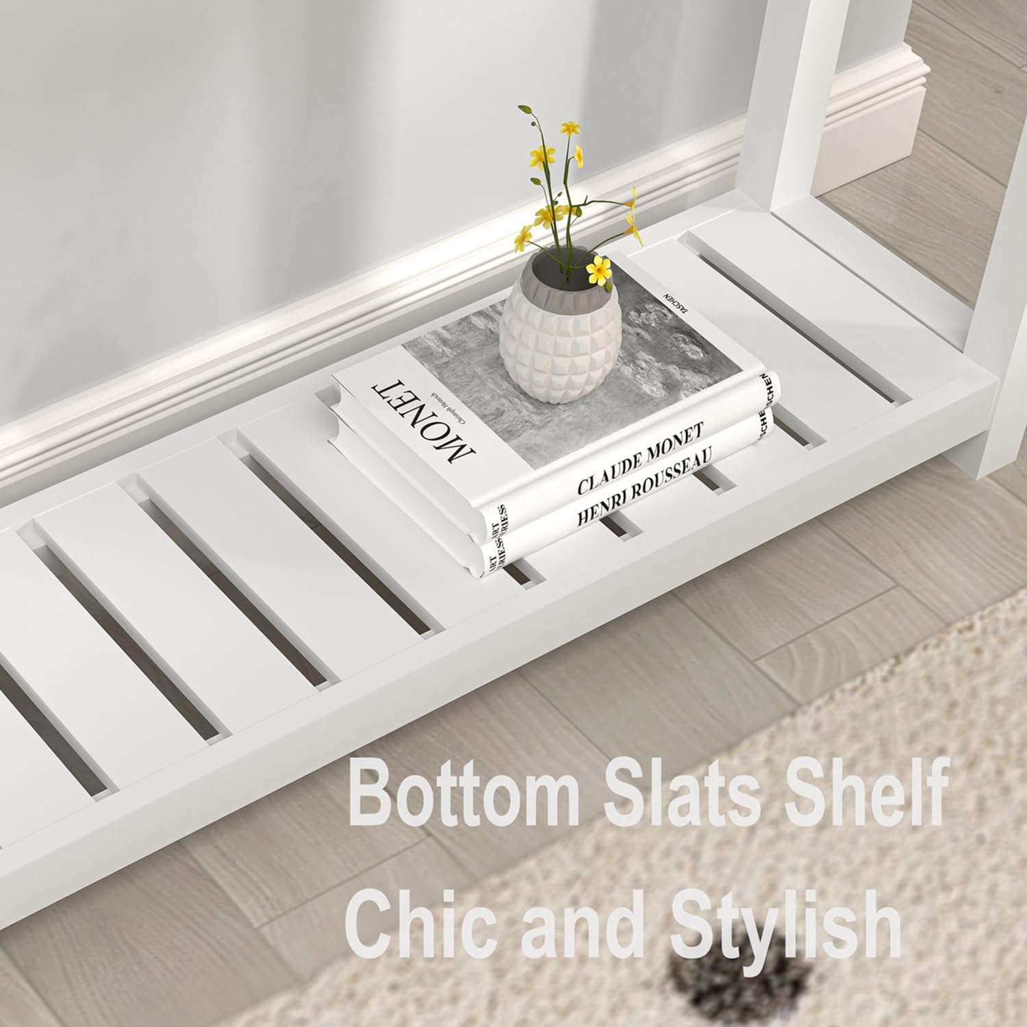 - Widely Used: This farmhouse entryway table can be used as a console table for living room, behind couch table, hallway table, foyer table, window table or sofa bar table. 2-tier design with a bottom slats shelf for extra storage and display space, multifunctional design makes it a practical addition to your living room, study or dining room.
