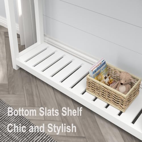 - AMPLE STORAGE: The bottom slats shelf of this entry table offers extra storage space, keeping your essentials organized and within reach. Whether it's books, magazines, or decorative items, this shelf ensures your belongings are neatly displayed while contributing to the overall design.