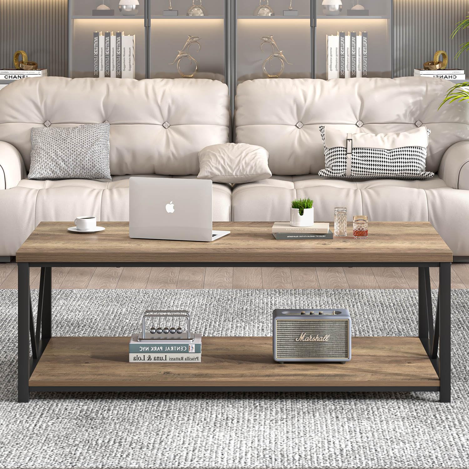FOLUBAN Modern Coffee Table, Living Room Center Table with Storage, Wood and Metal Cocktail Table, Rustic Oak, 47 Inch