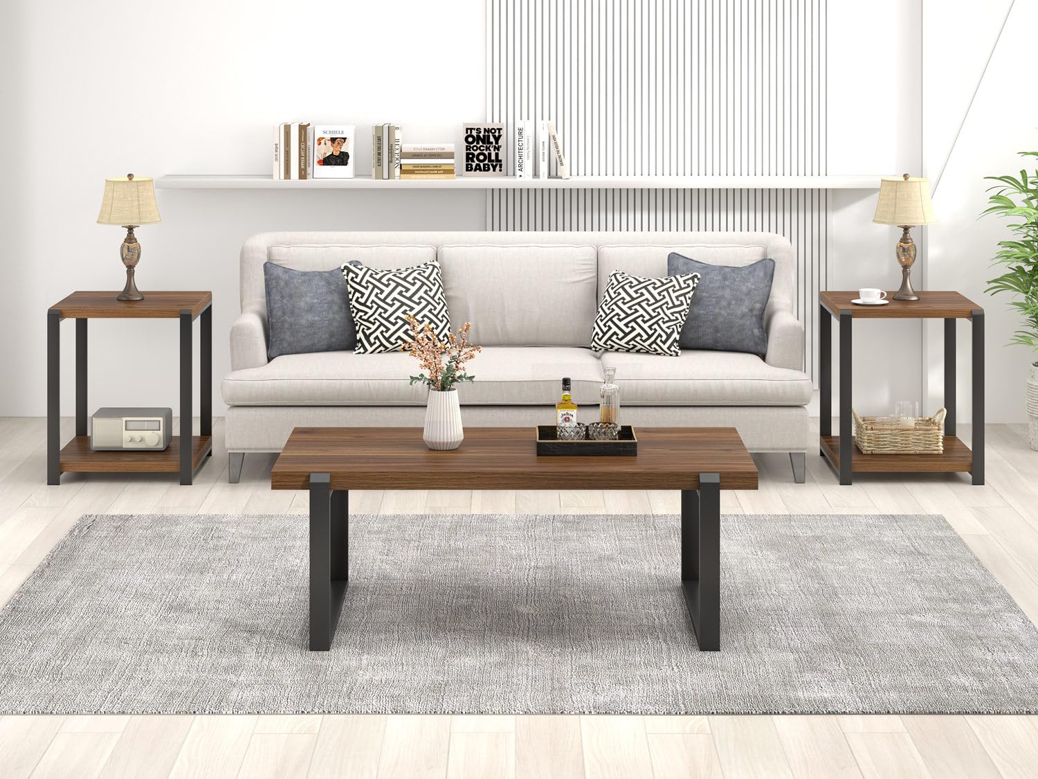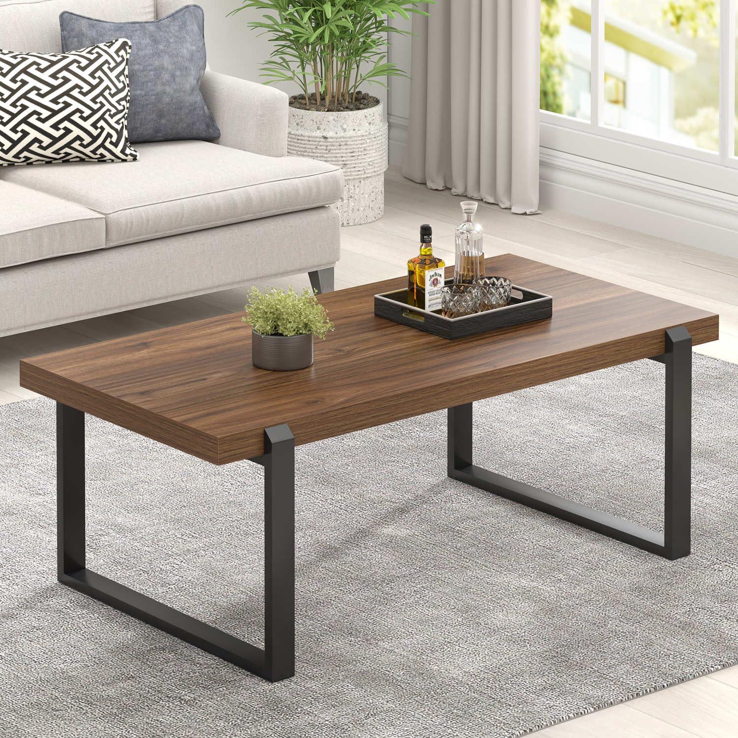 - Rustic Modern Design: This coffee table features a rustic walnut wood grain surface paired with a black metal frame. Its clean lines and minimalist design make it a versatile piece that complements industrial, retro, and contemporary living spaces.