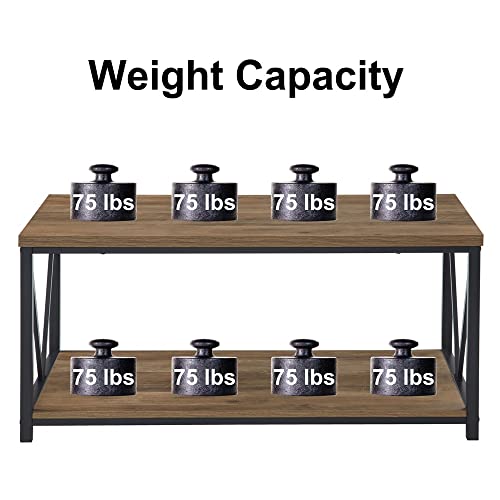 FOLUBAN Rustic Coffee Table with Storage Shelf, Vintage Wood and Metal Cocktail Table for Living Room, Oak