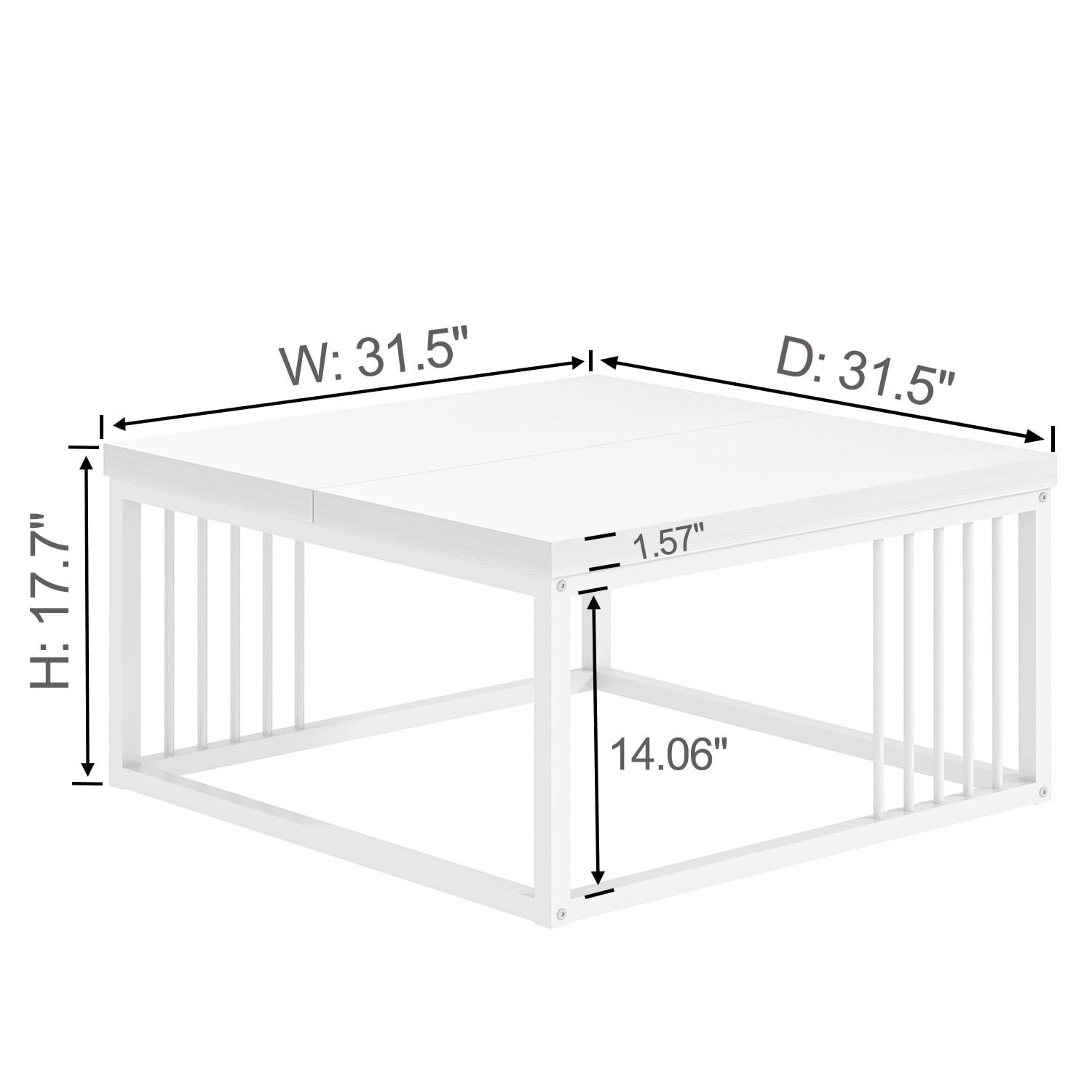 - Modern Coffee Table: This square coffee table’s rustic white oak wood grain surface and white metal frame offer an industrial vintage look. It’s an eye-catching choice that enhances your living room as a center, cocktail, or tea table