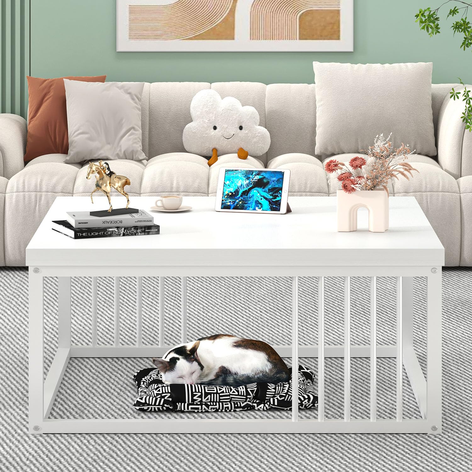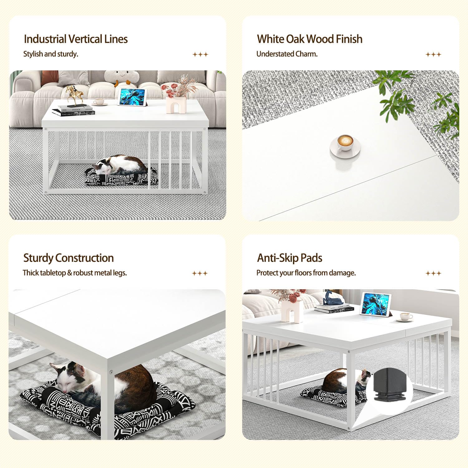 - Pet-Friendly Structure: The open framework not only allows for easy legroom but also provides a cozy space beneath the coffee table for pets to relax. The vertical bars along the sides add a touch of unique design and a playful element for cats and dogs