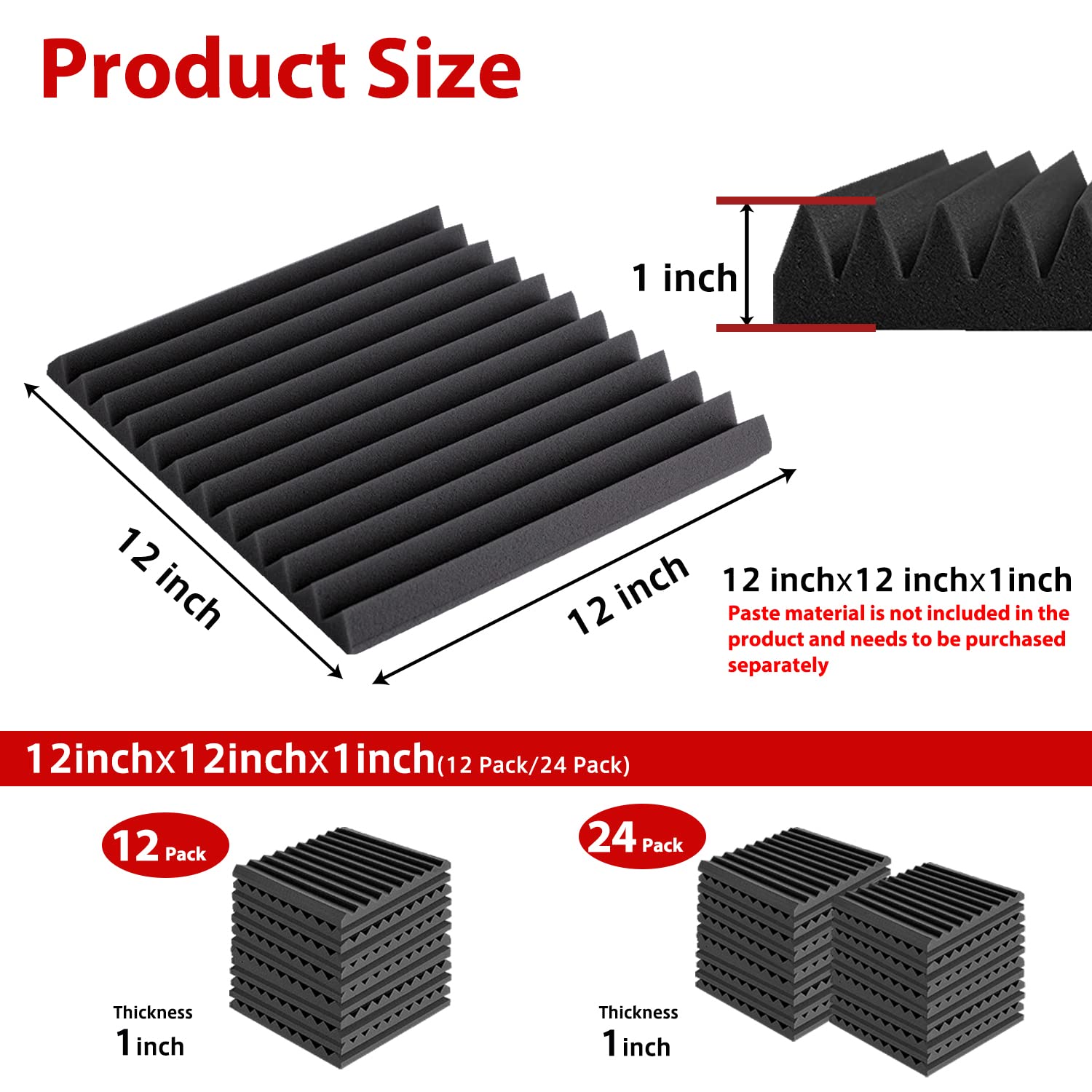 - 【Specifications and Service Guarantee】 - Every package comes with 12 pack set acoustic foam panels which covers 12 sq ft in total. The dimension is 12 x 12 inches of 1 inch (from bottom to its peak) for each tile. If you have any questions about our Acoustic Foam Panels, feel free to contact us, we will reply you within 24 hours and give you a satisfactory solution.