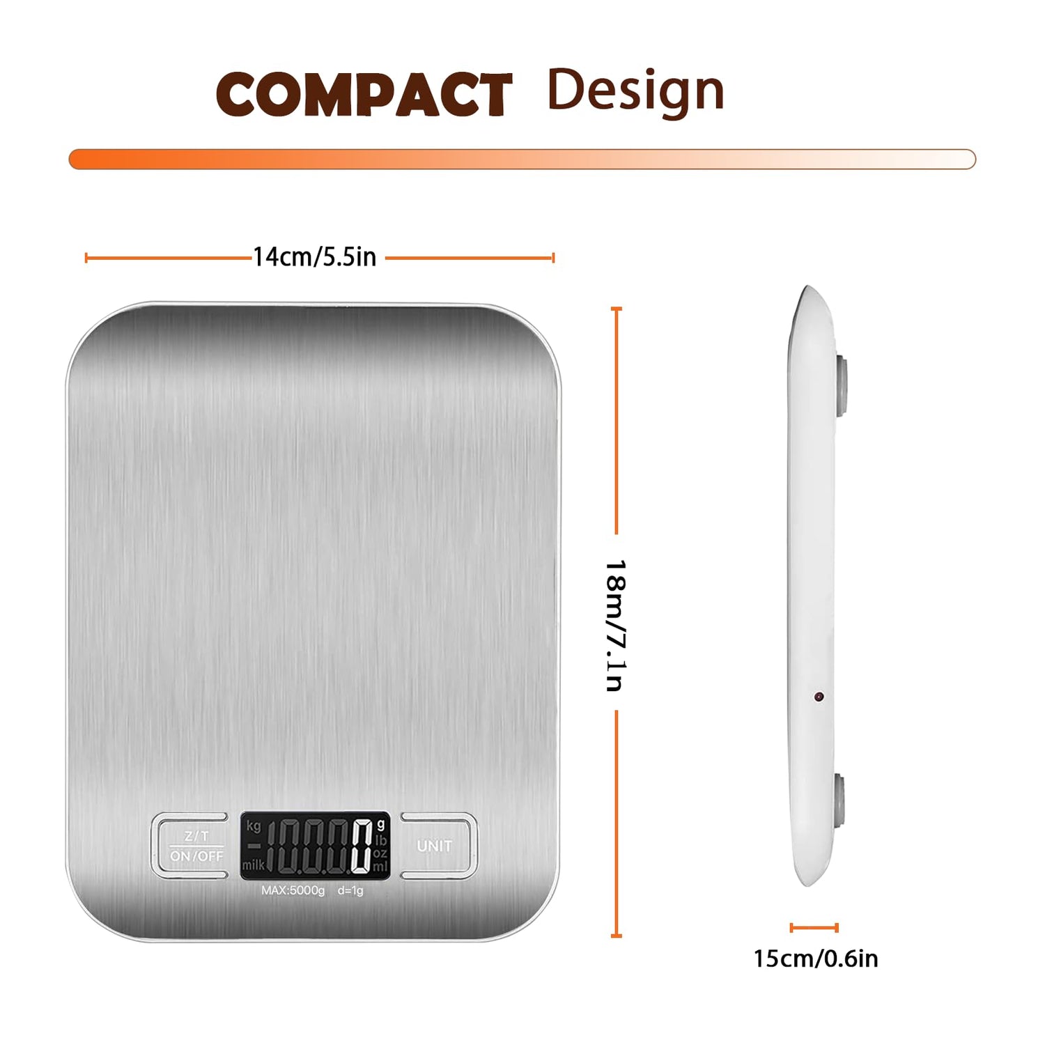 Details: Food Scale with USB Rechargeable, 11lb Digital Kitchen Scale Weight Grams and oz for Baking Cooking, Stainless Steel and Tempered Glass Waterproof Body, 1g/0.1oz Precise Graduation