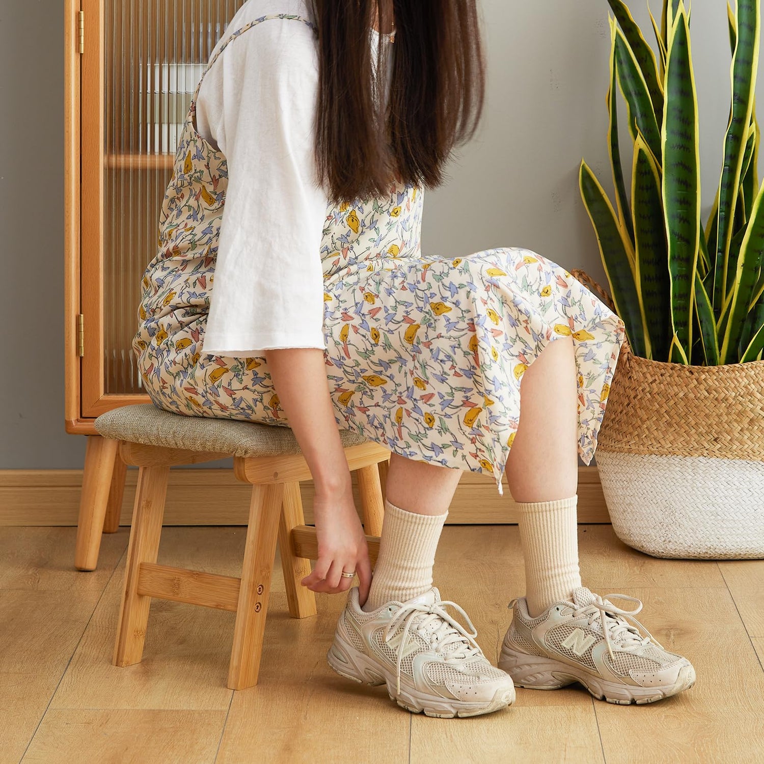 Foot Stool,Ottoman Foot Rest,Bamboo Foot Stool Under Desk,Small Stool for Living Room, Bedroom and Kitchen (Natural Legs - Beige Stool Surface)