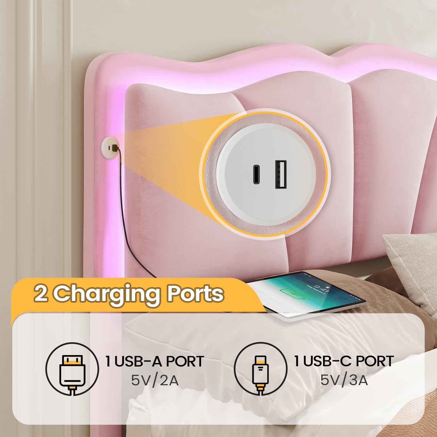 - 【Headboard with USB Ports】Full size bed frame is arranged with 2 USB Ports. One of the USB ports is usually used for the led lights, and the other type-C port supports fast charging your tablets, phones, or other mobile devices.
