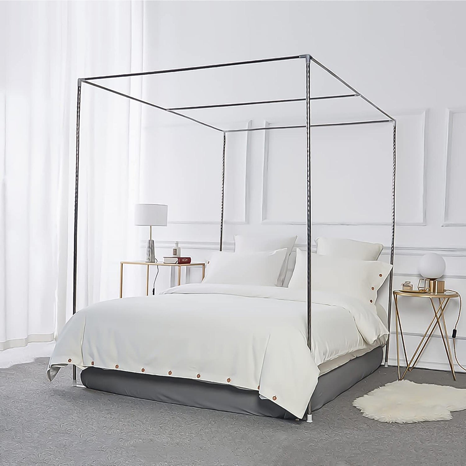 Foreate Canopy Bed Frame Stainless Steel Queen Size Bed Canopy Frame & Bed Poles, Fit for Four-Corner Bed and Mosquito Curtains, Queen (Silver)
