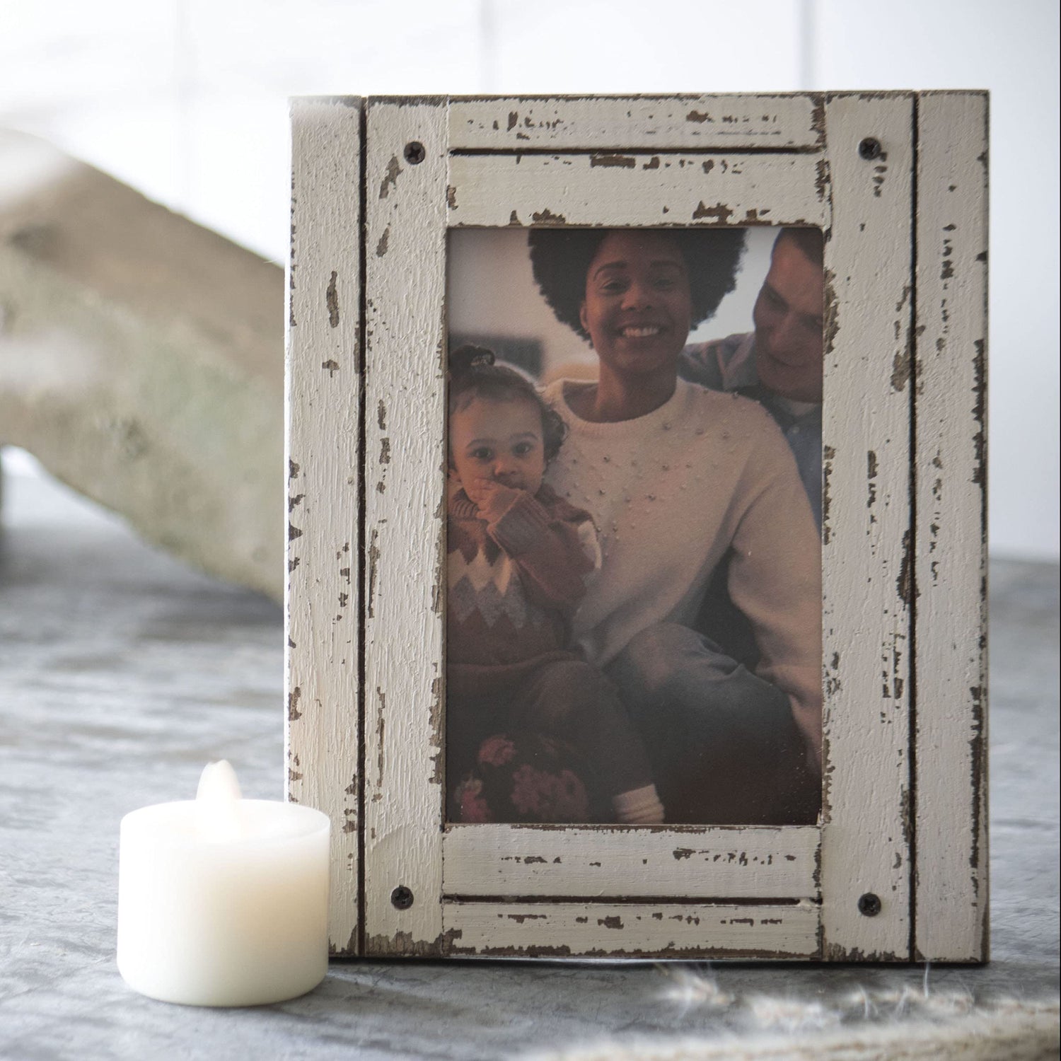 - Style: The wood picture frame features a distressed white plank finish and holds a 4 x 6 photo. With it's lovely rustic style, this frarme will fit perfectly with your favorite décor.