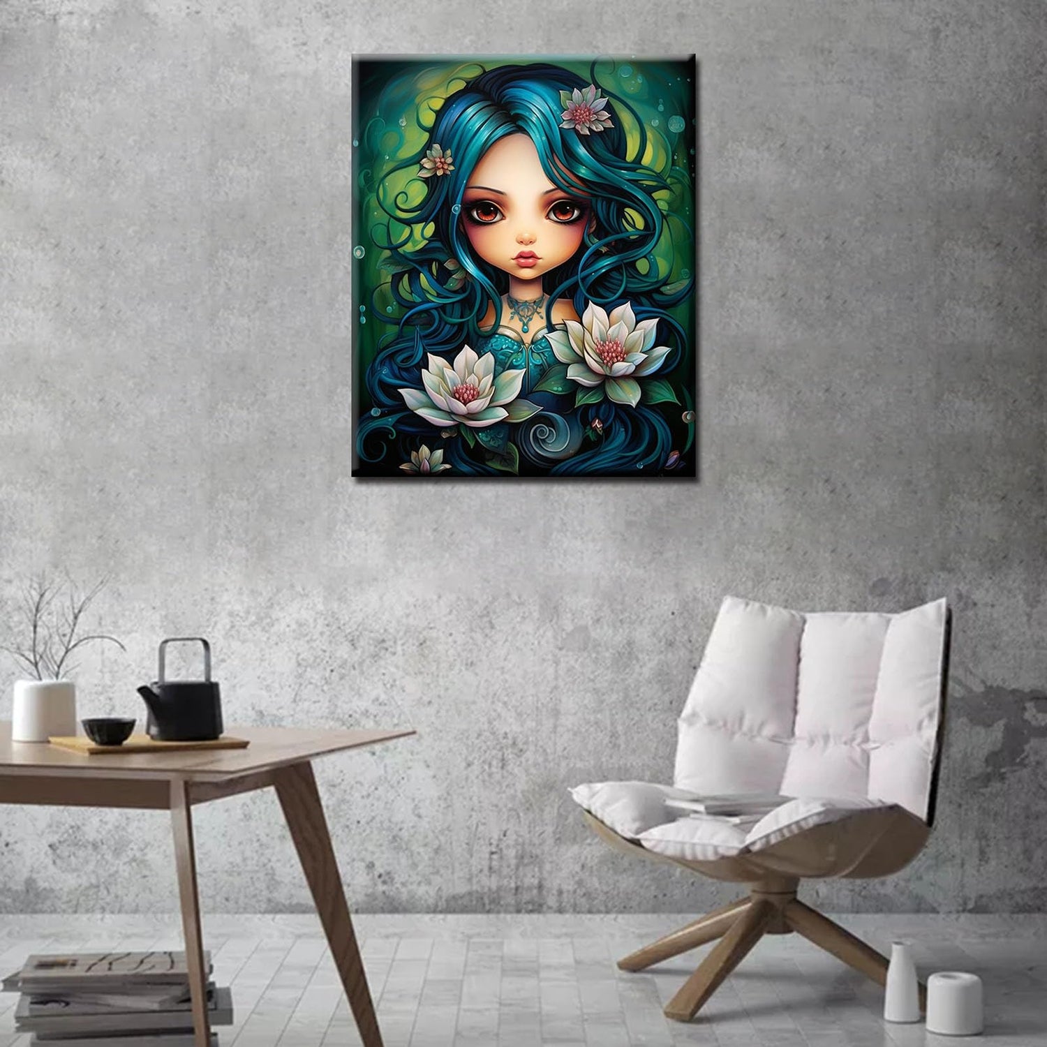 Forest Princess Paint by Number Little Girl with Lotus Flowers DIY Painting On Canvas with Brushes Acrylic Paints Paint by Numbers for Adults and Kids Students Beginner 16x20 Inch Gift(Frameless)