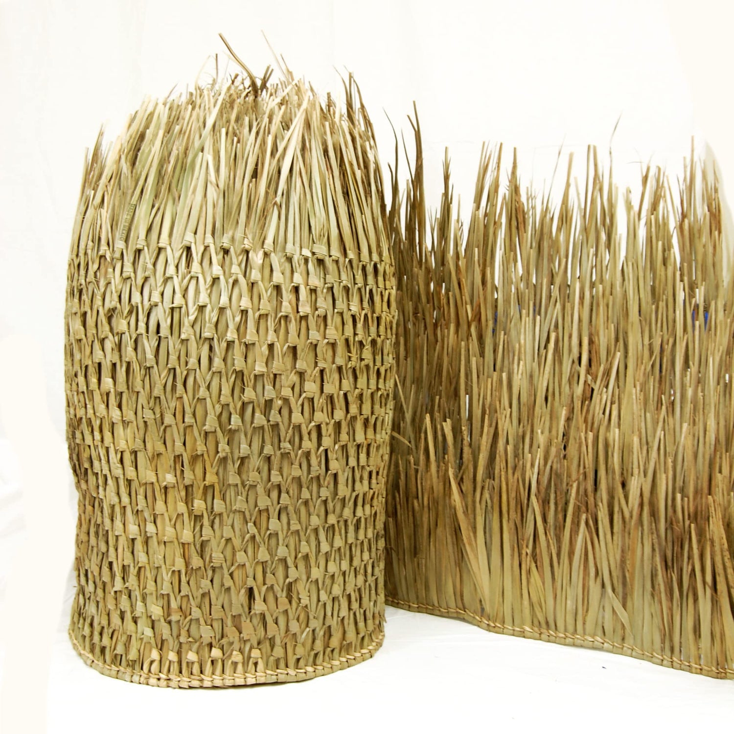 Details: Made only from the most valued Mexican Palm Thatch which is hand selected for durability, our rolls are individually hand woven into approximately 35" x 8' sections able to be cut without unraveling and trimmed to any width and length. Our process results in a product able to withstand high wind, water, dry and parched conditions.