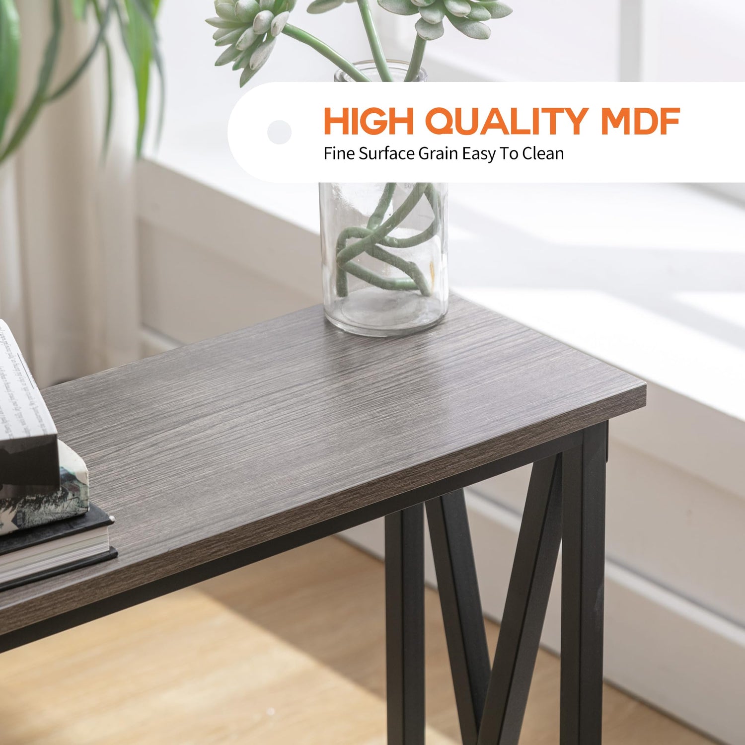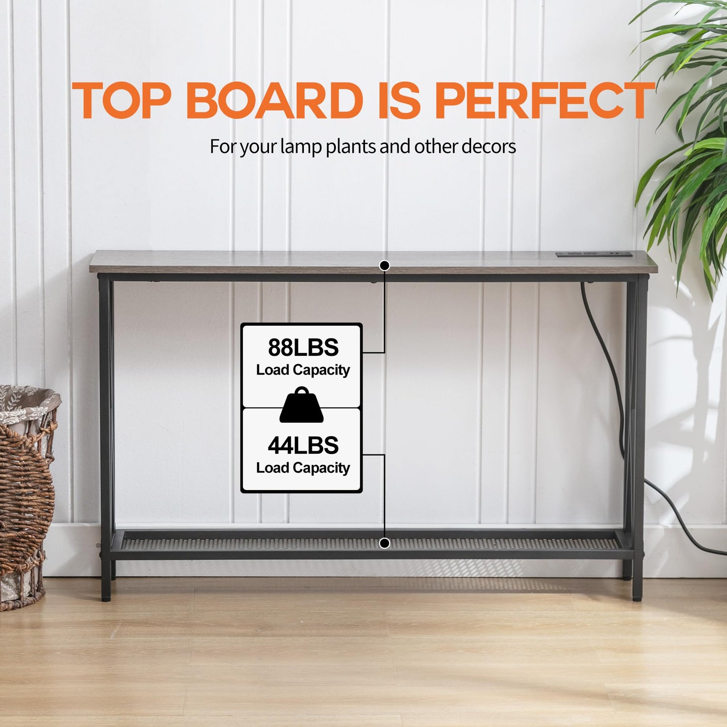Forevich Console Table Sofa Entryway Couch Table with USB Power Outlet for Living Room Hallway Mesh Shelf 47 Inch Grey Oak