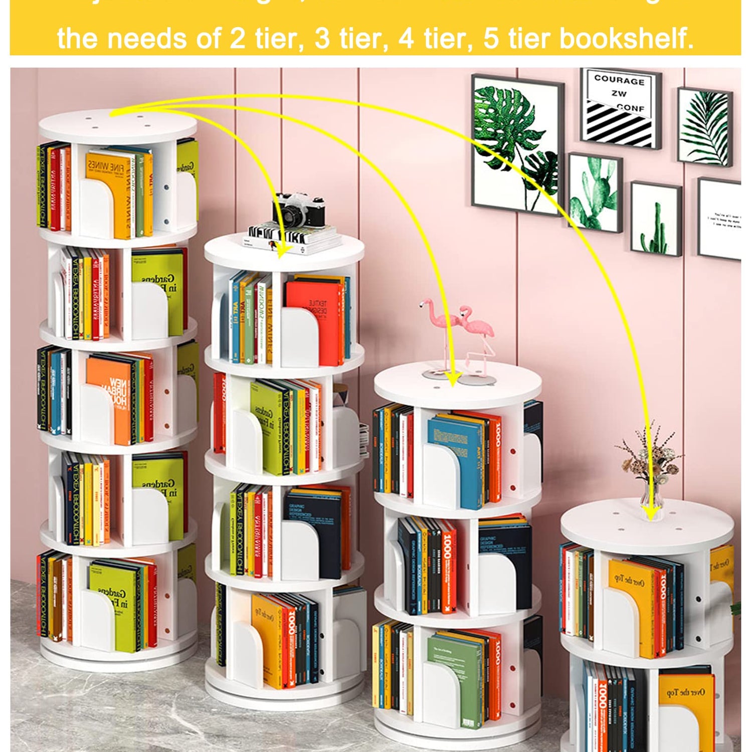 Modern 5-Tier Rotating Bookshelf - 360° Revolving Storage Rack for Home & Office - White