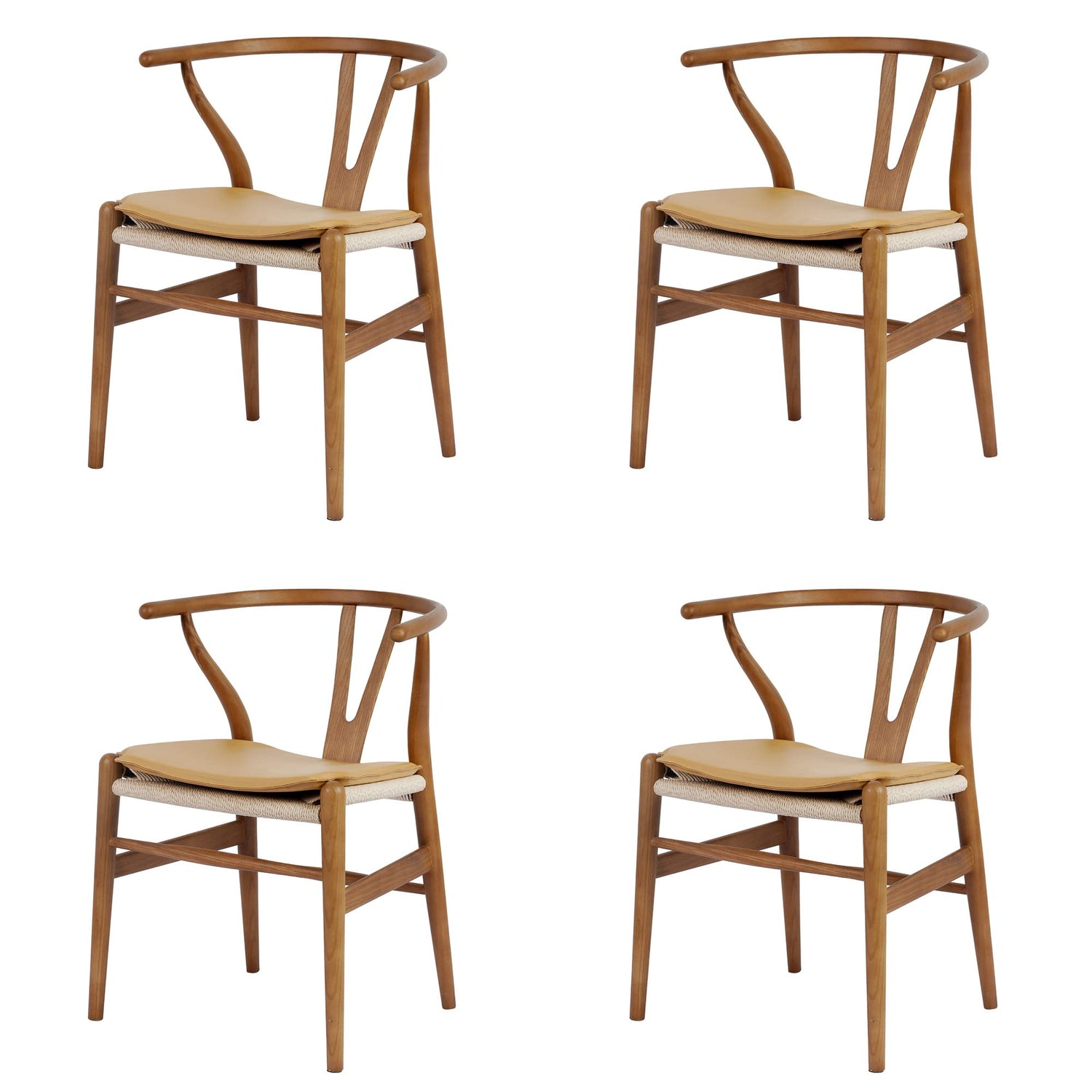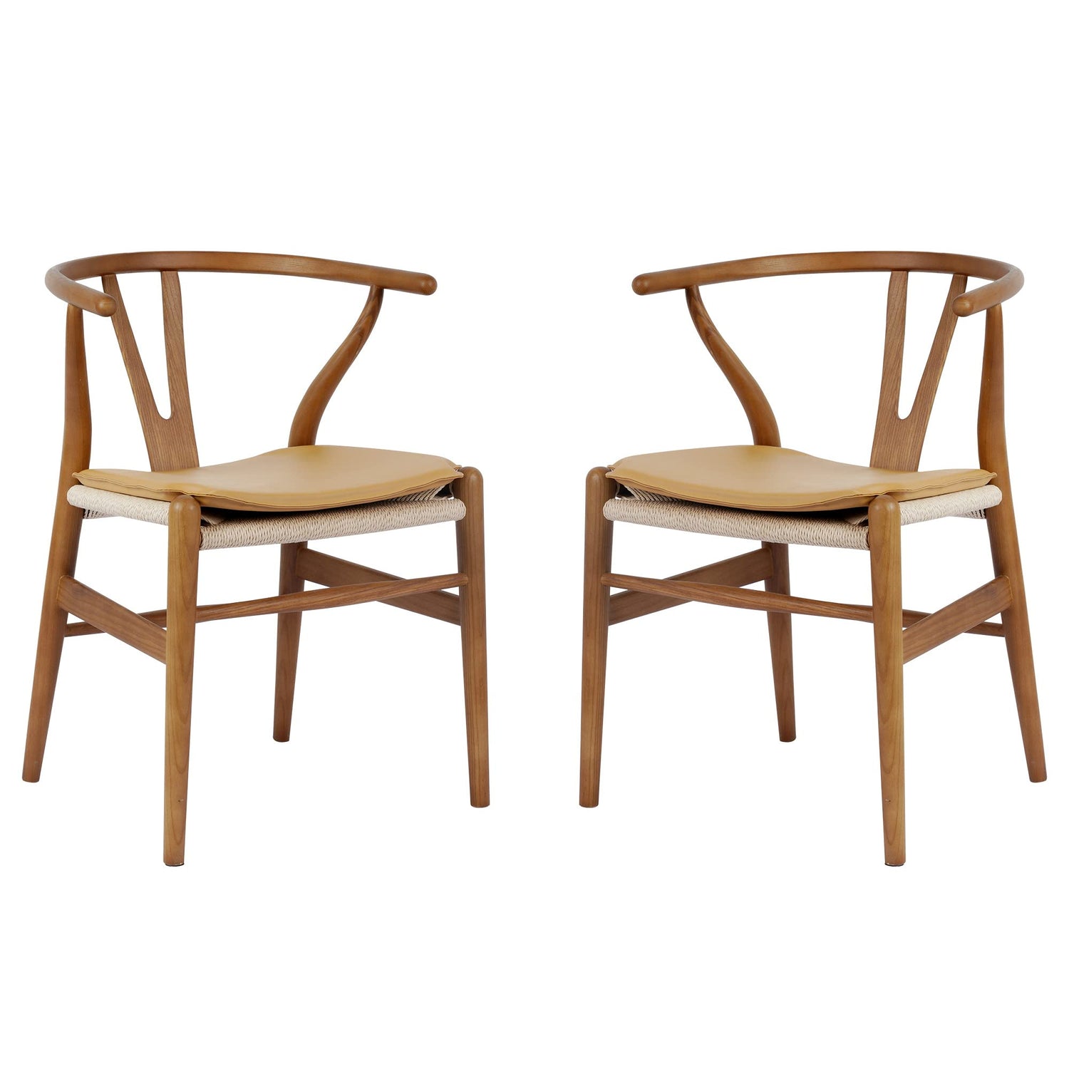 Forsho Set of 2 Solid Wood Wishbone Dining Chair with PU Soft Seat Cushion,Mid-Century Y Back Weave Dining Chair(Ash Wood - Walnut + Cushion)