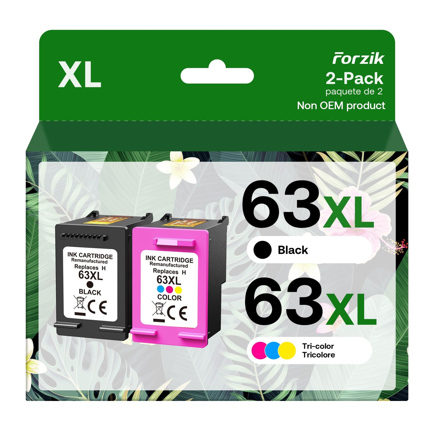 - Package Contents: 2 pack remanufactured ink cartridge replacements for 63xl (1 black & 1 tri-color).