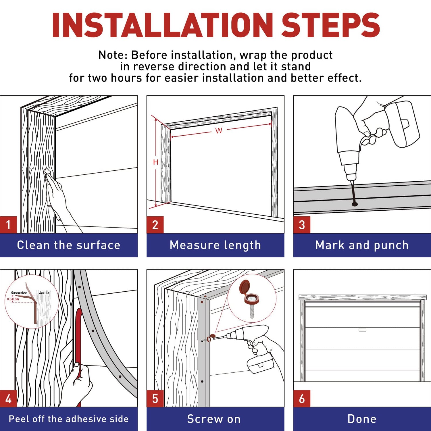 - TIPS TO GET MORE GREAT PERFORMANCE: Flat the garage door trim seal in reverse direction for two hours or use a hair dryer to heat the garage seal before install. This will prevent the product from forming a wavy shape after installation, and even if there is a wavy shape he will slowly flatten out over time