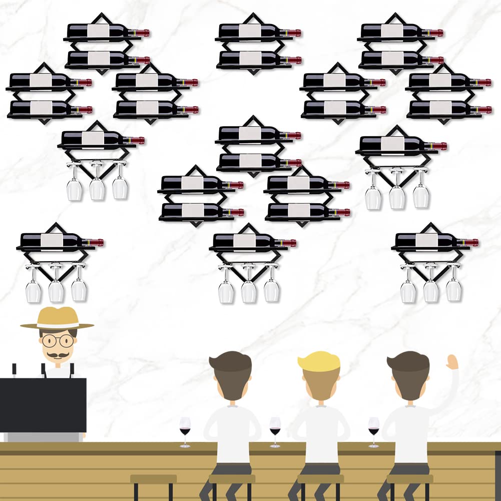 - Multi-Function: Wall mounted wine rack is folding with two layers metal frame, which can store wine bottles and hang stem glass. Display simple and highly functional wall decor at home, kitchen, bar, dining room