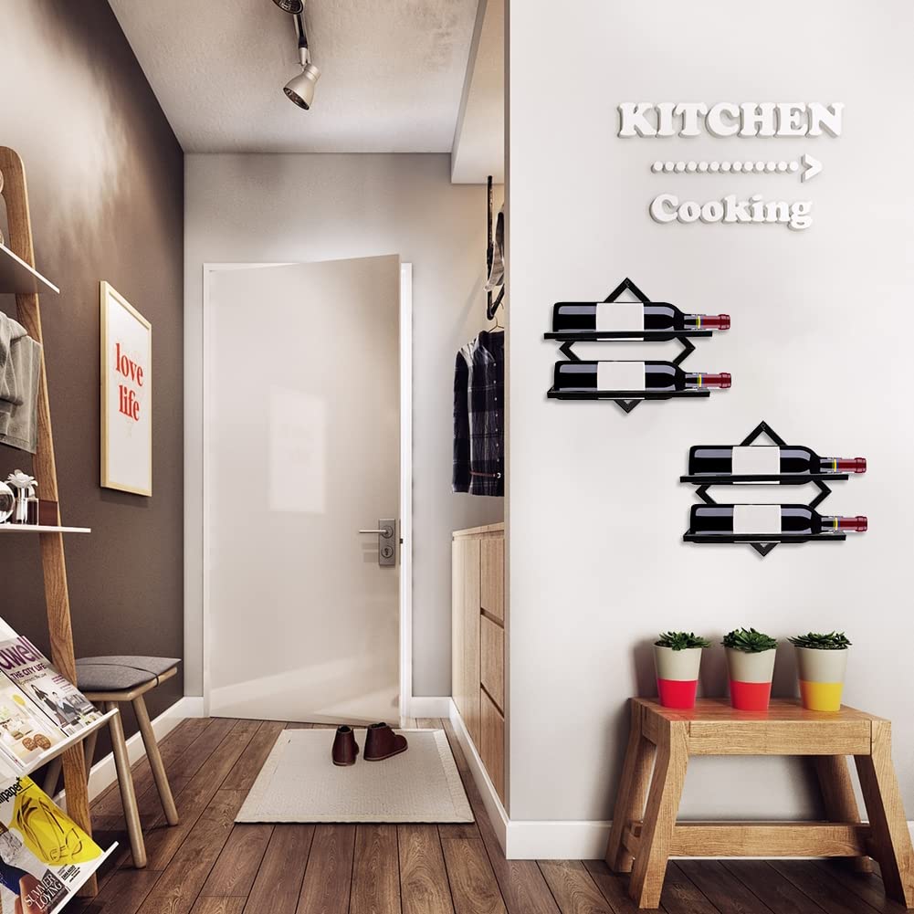 - Easy Install: 2 Sets of Wall hanging wine rack comes with 4 wall anchors and 4 screws. Through the top and bottom of two mounting holes to the location you want to install. 2 sets Wine wall rack holds 4 bottles wine