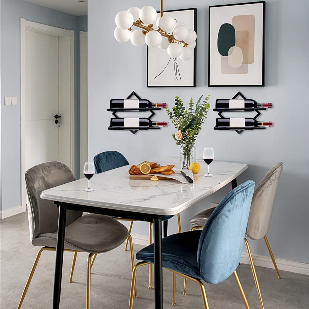 FOSTERSOURCE 2Pcs Metal Wall Mounted Wine Rack Hanging Wine Bottle Holder Wall Organizer Storage Shelf for Home Kitchen Bar Decor