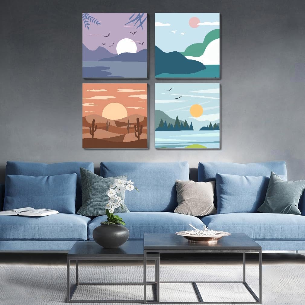 Fotasmua 4 Pack Framed Paint by Number Kits for kids Sunset, DIY Landscape Paint by Numbers Kits for Adults on Canvas, Easy Acrylic Oil Painting for Kids & Adults Beginners for Wall Decor (8 x 8 Inch)
