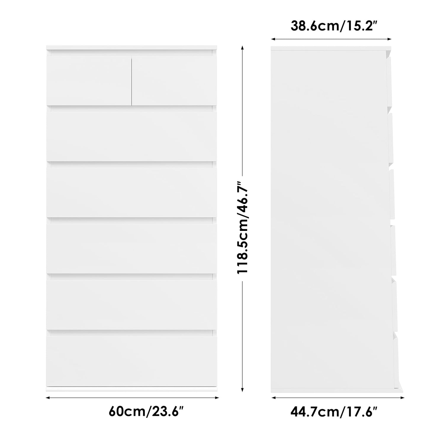 - 【Modern Aesthetics】This 7 drawer dresser adopts a simple modern style. A clean expression that fits right in any home style. The tall dresser is sprayed in white color with simple straight lines. This elegant design can make your home or office look neater and brighter, showing your good taste.