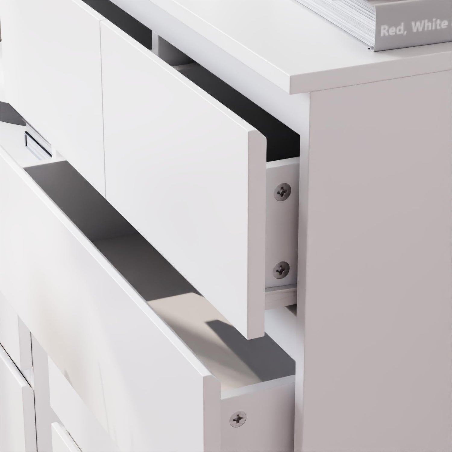 - 【Multifunctional Use】This tall white dresser is perfect for anywhere you want to control clutter, such as a playroom, or entryway. This dresser is both functional and decorative. Smooth slides make it easy to pull in or pull out. More importantly, this white tall dresser uses a unique handleless design that does not occupy any space and looks more elegant.