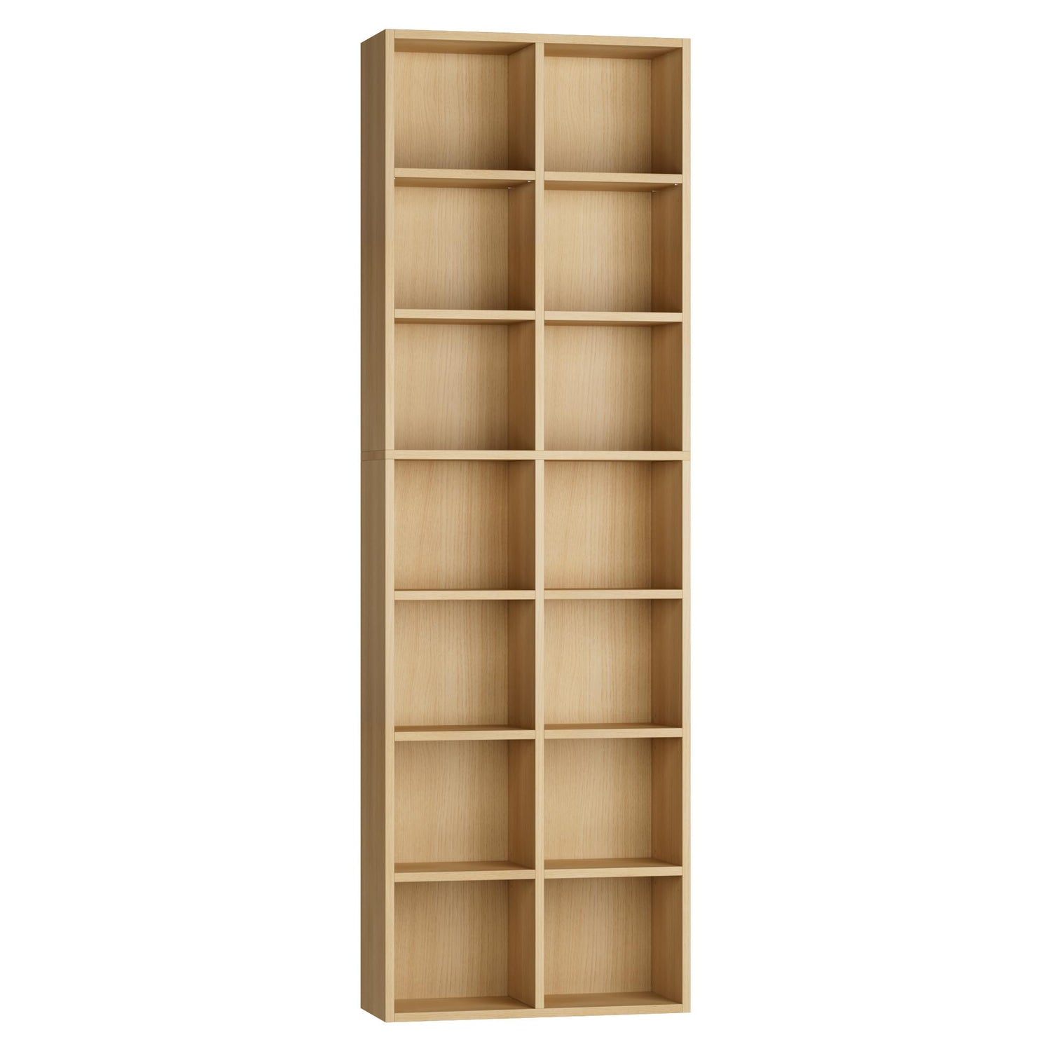 FOTOSOK 71’’ Narrow Bookshelf and Bookcase, Wooden Shelf 7 Tier Media Storage Tower Rack, CD DVD Storage Tower Rack with Adjustable Shelves,Double Wide Slim Bookshelf Cube Storage Organizer, Natural