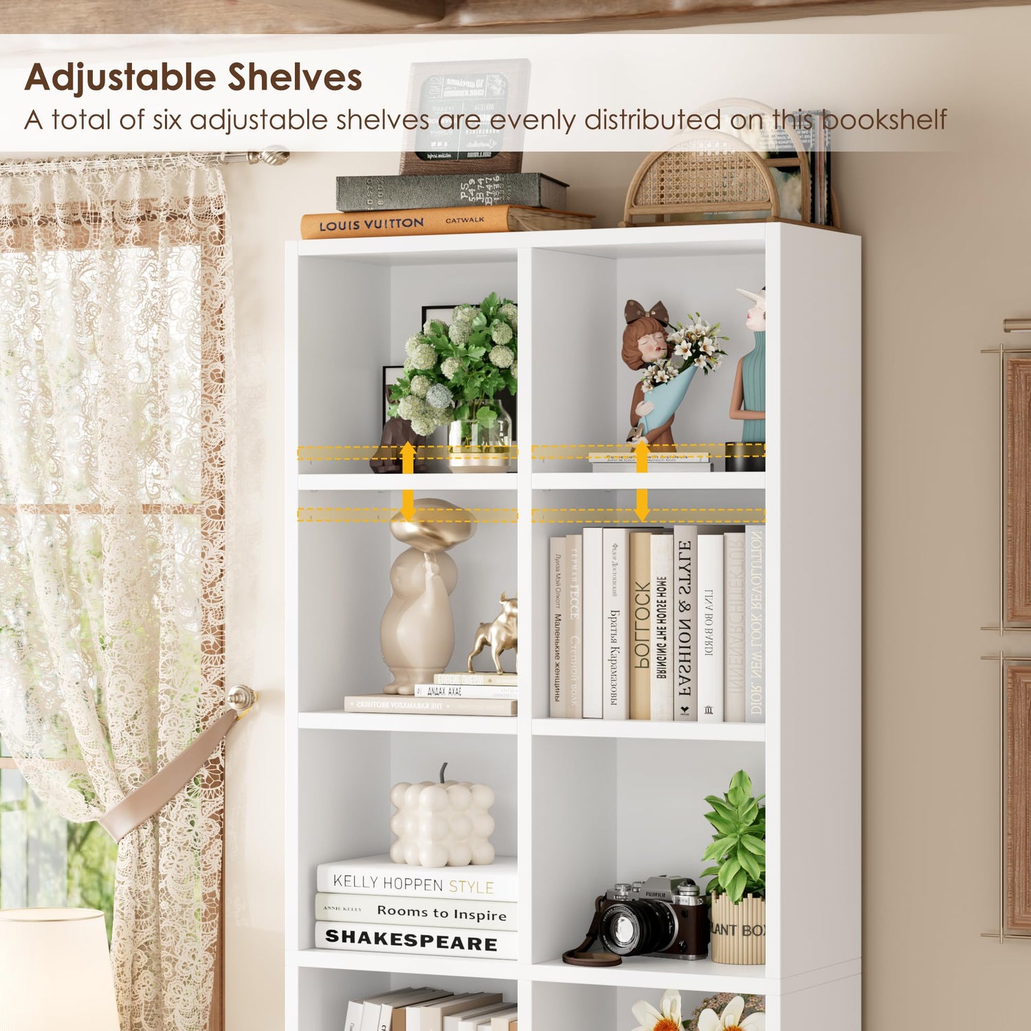 FOTOSOK 71'' Tall Bookshelf, Double Wide Media Tower Rack CD DVD Rack Display Cabinet with Adjustable Shelves, Tall Narrow Bookcase White Bookshelf Cube Shelf for Home Office, White