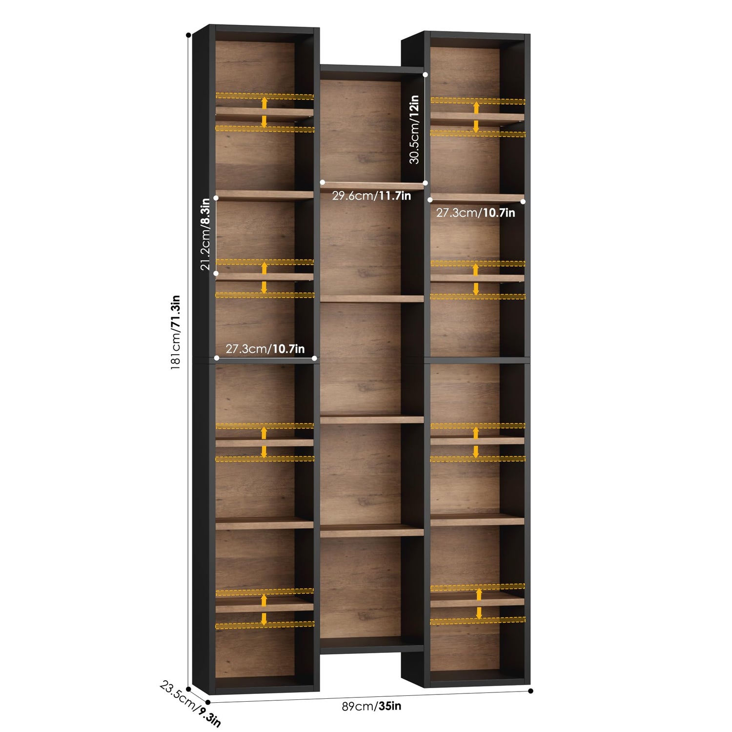 - ๐๐ซ๐ข๐ฉ๐ฅ๐ ๐๐ข๐๐ ๐๐๐ ๐๐๐๐ค ๐๐ก๐๐ฅ๐-- Larger capacity, more possibilities. This media tower Rack is composed of 21 cubes in total which can store and display most of your CD DVDs and any decorations. The middle part of the tall bookshelf is wider and taller which can flexibly suit more storage volume needs.