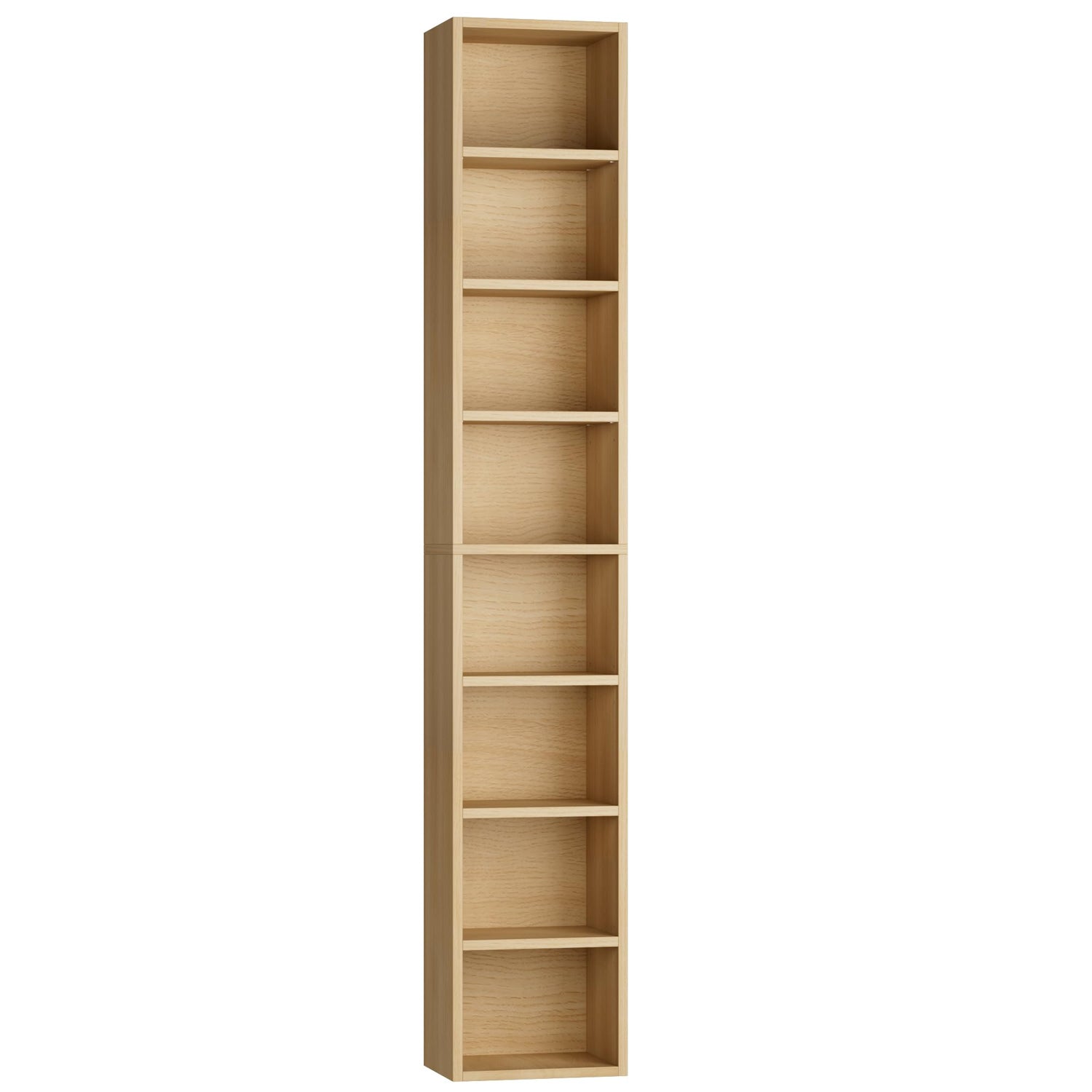 FOTOSOK 8-Tier Media Tower Rack, 11.6 X 9.3 X 71 Inches CD DVD Slim Storage Cabinet with Adjustable Shelves, Tall Narrow Bookcase Display Bookshelf for Home Office, Natural