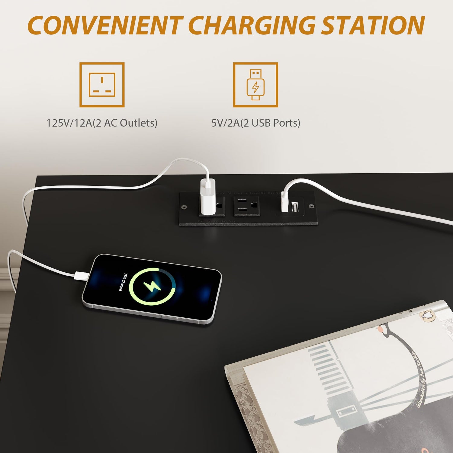 - Convenient Nightstand with Charging Station -- Designed with 2 x 125V/12A AC outlets and 2 x 5V/2A USB Ports to meet most of your daily charging needs. Whether you want to charge your phone, connect a desk lamp, or connect an aromatherapy appliance, you can do these all on the black nightstand.