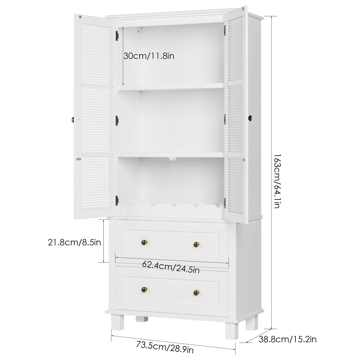 - 【 Solid Wood Feet】The rattan pantry includes thick cabinet legs and anti-toppling hardware to ensure kitchen cabinet stability, and to ensure the items you keep in the cabinet are not easily damaged.