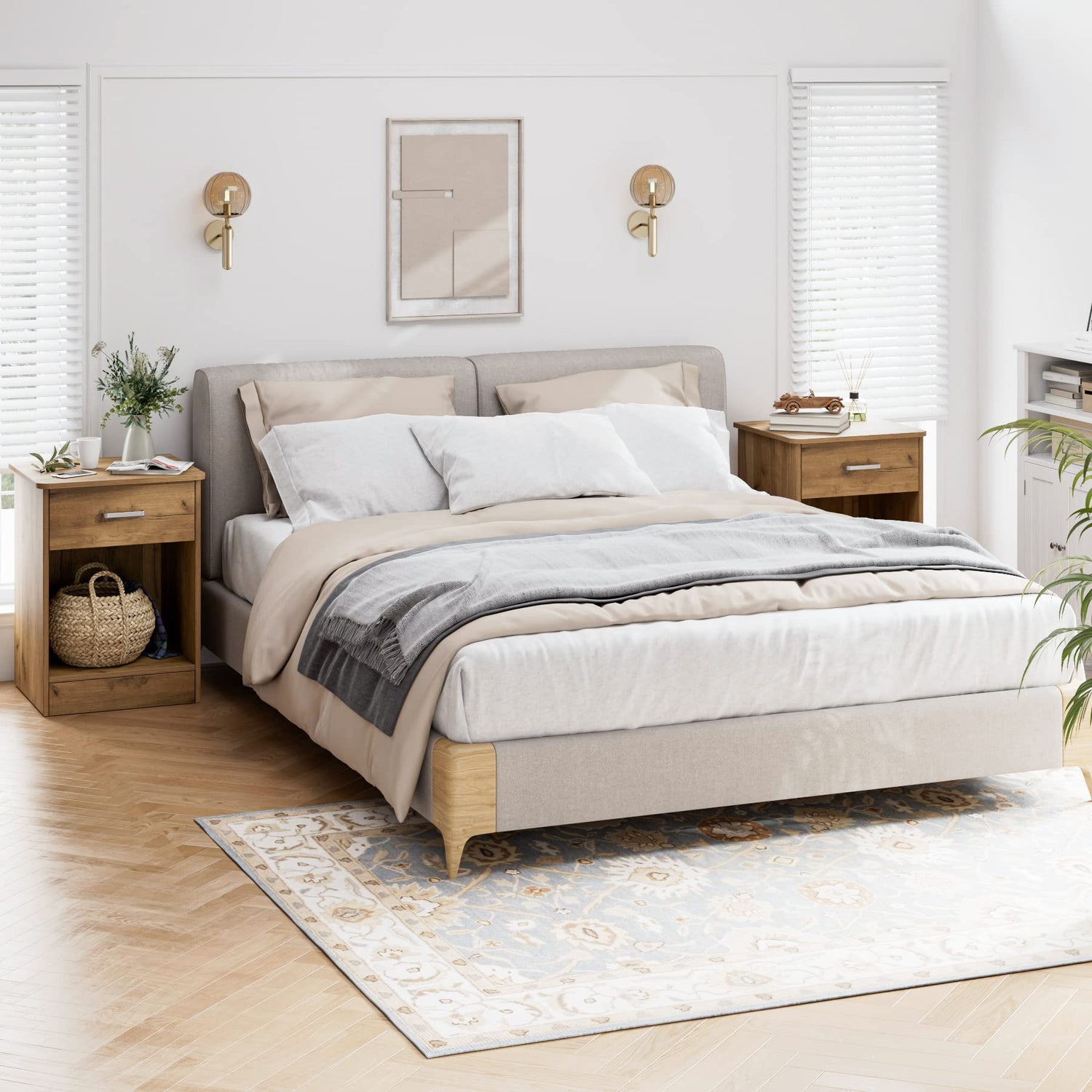 FOTOSOK Nightstand Set of 2, 2-Tier Side Table with Drawer and Storage Shelf, Bedside Table End Table, Modern Night Stand for Bedroom, Home Office,Wooden Grain