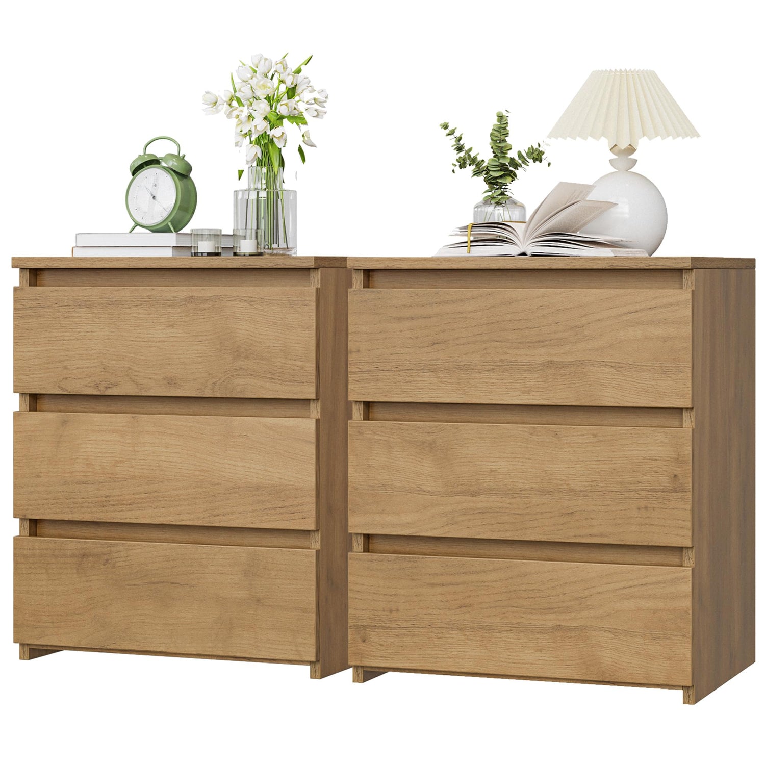 FOTOSOK Nightstand Set of 2 Nightstand with 3 Drawers, Bedside Table Night Stand for Bedroom with Cut-Out Handle, Sofa Side Table 3 Drawer Nightstand for Bedroom, 17.7W*15D*21.7H, Wooden Grain