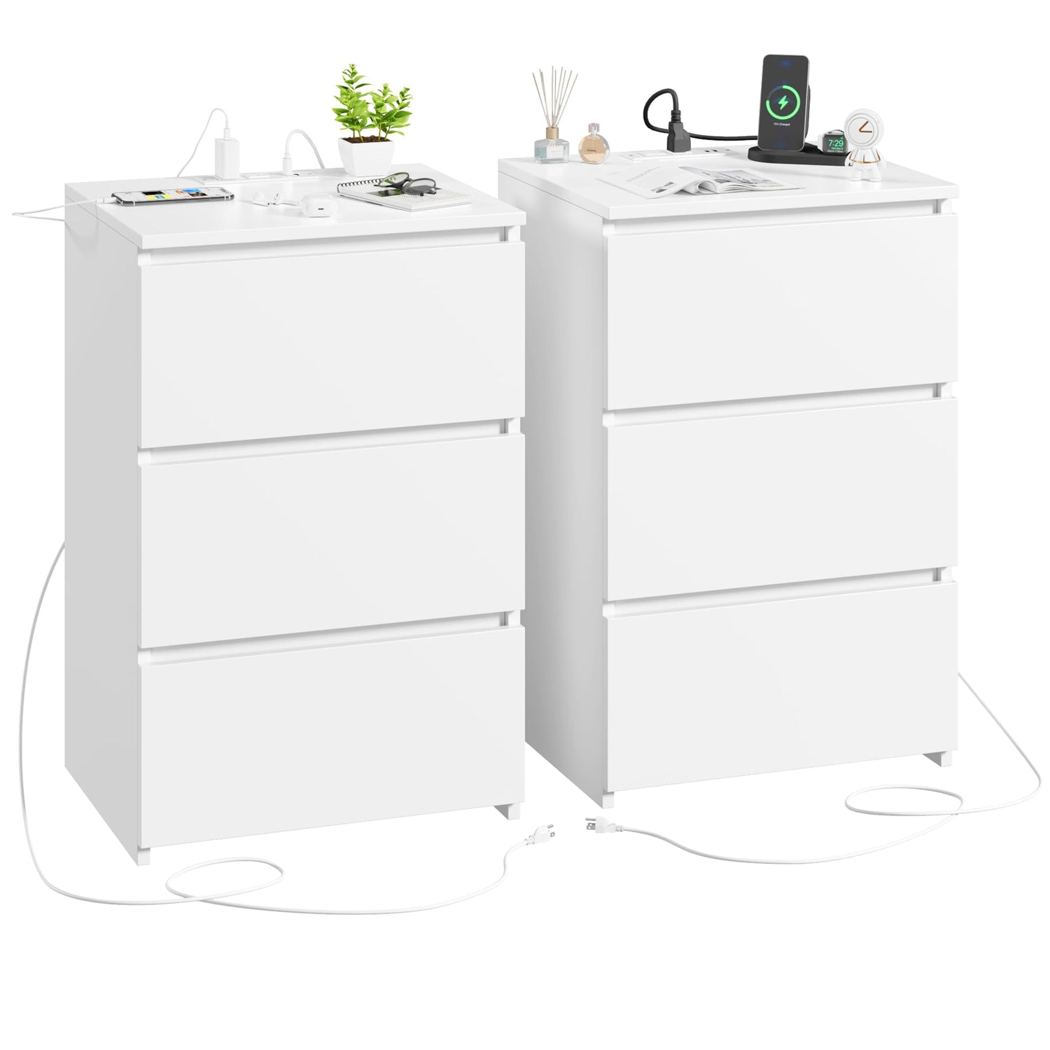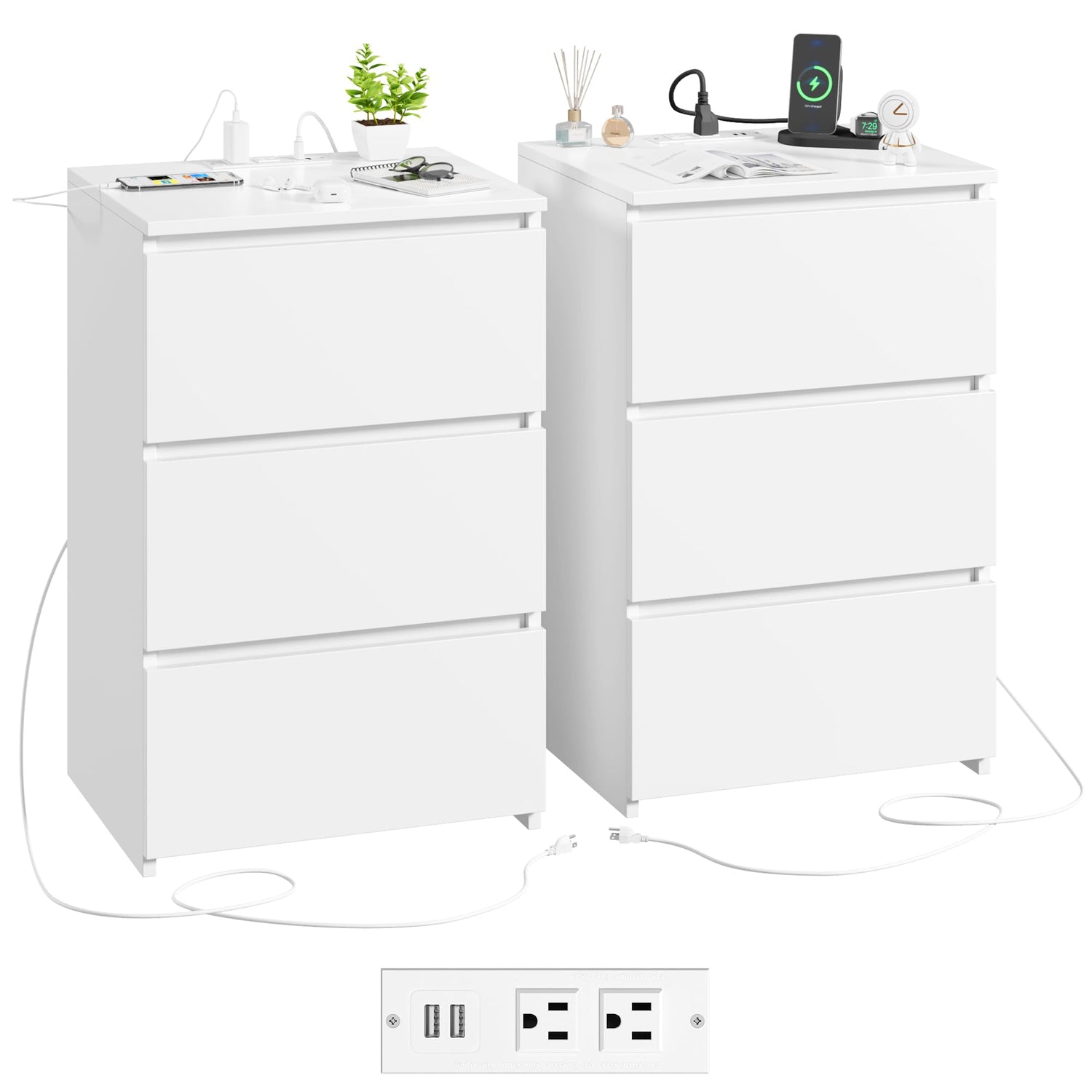 - Convenient Nightstand with Charging Station -- Designed with 2 x 125V/12A AC outlets and 2 x 5V/2A USB Ports to meet most of your daily charging needs. Whether you want to charge your phone, connect a desk lamp, or connect an aromatherapy appliance, you can do these all on the nightstand set of 2.